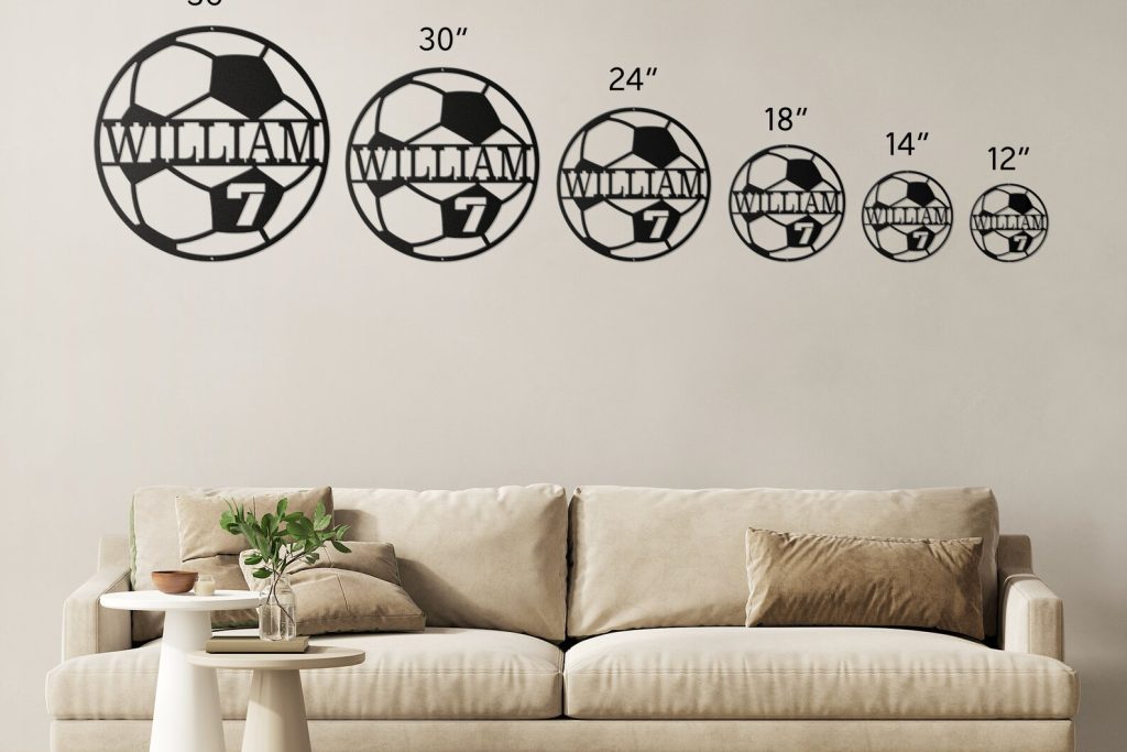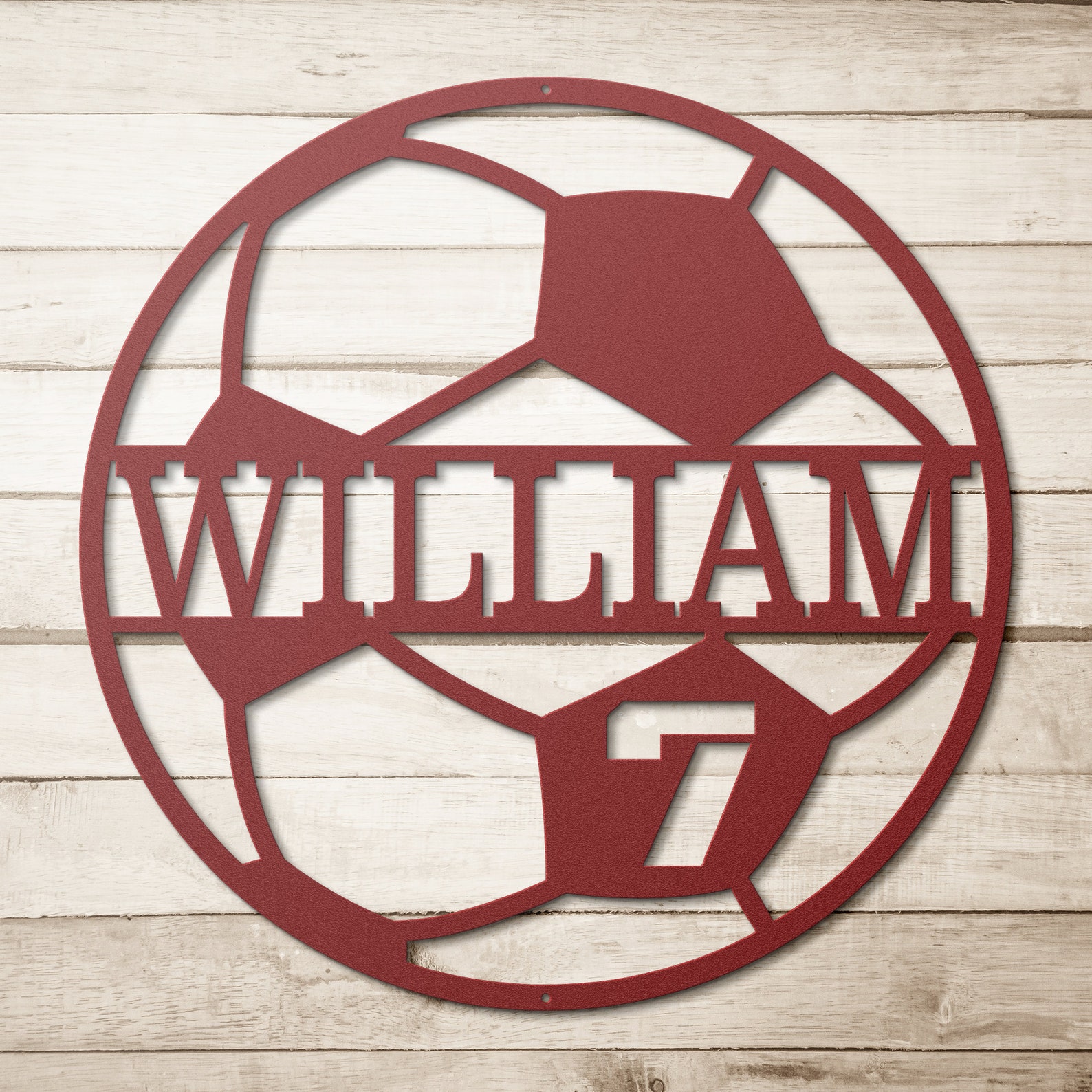 This personalized metal soccer ball sign is the perfect addition to any Soccer Players room! Its sleek design, precut mounting holes and customizable features make it a unique and thoughtful gift for all soccer players.