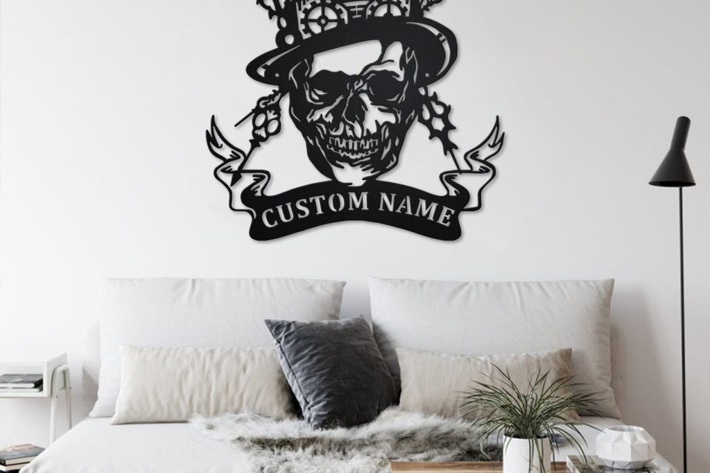 Custom Steampunk Skull Metal Wall Art – Personalized