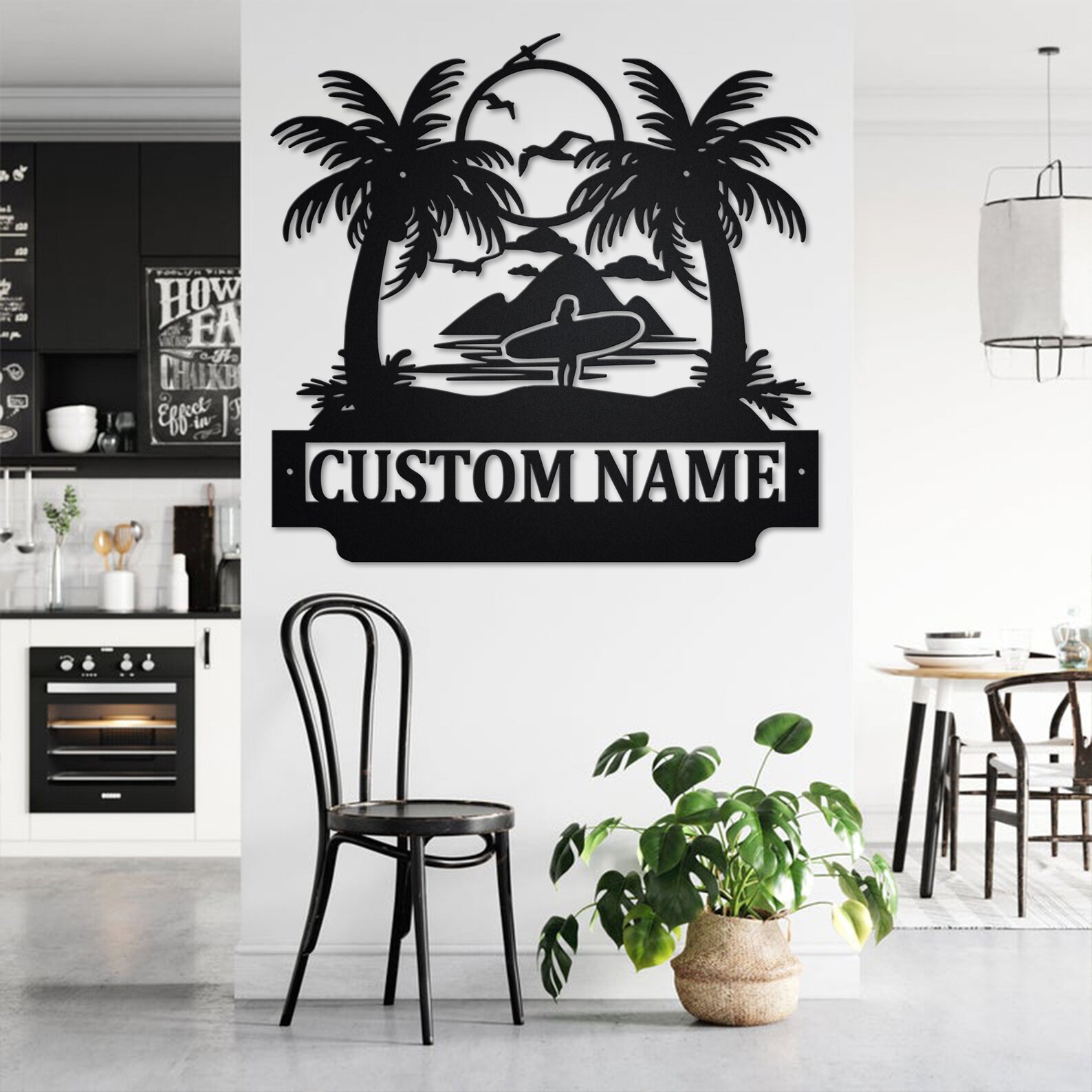 Custom Summer Vibes Surfer Metal Sign with LED – Room Decor