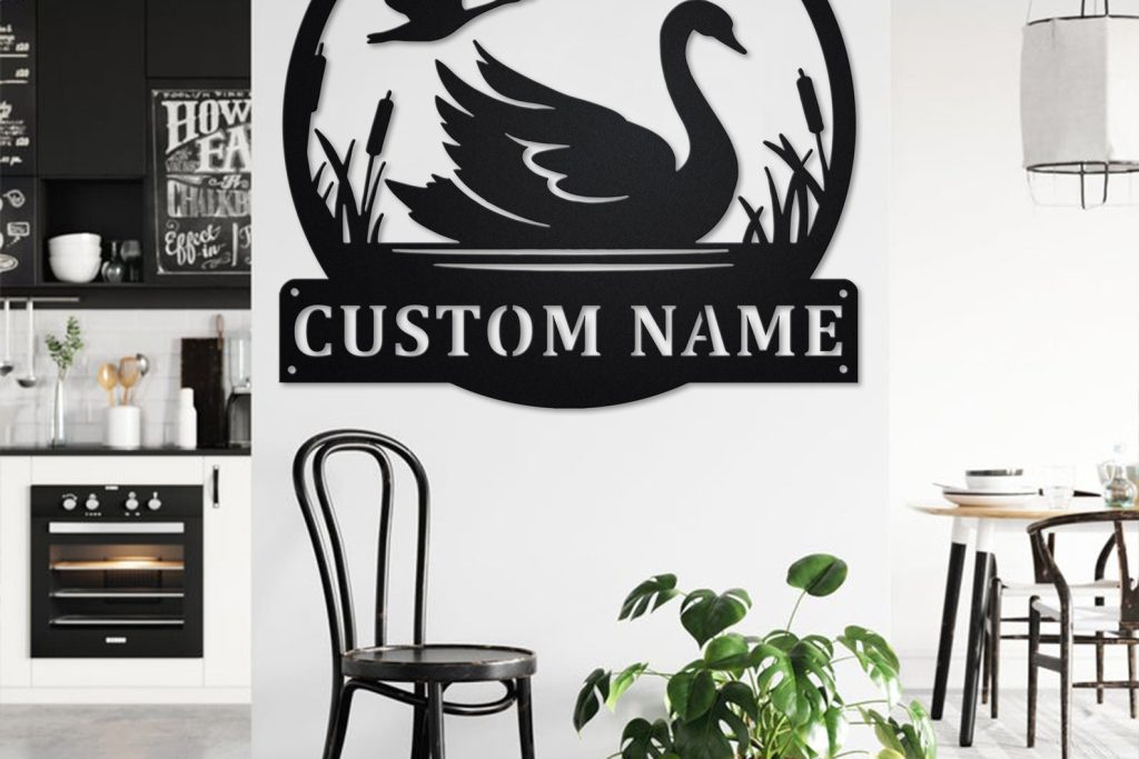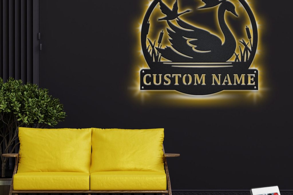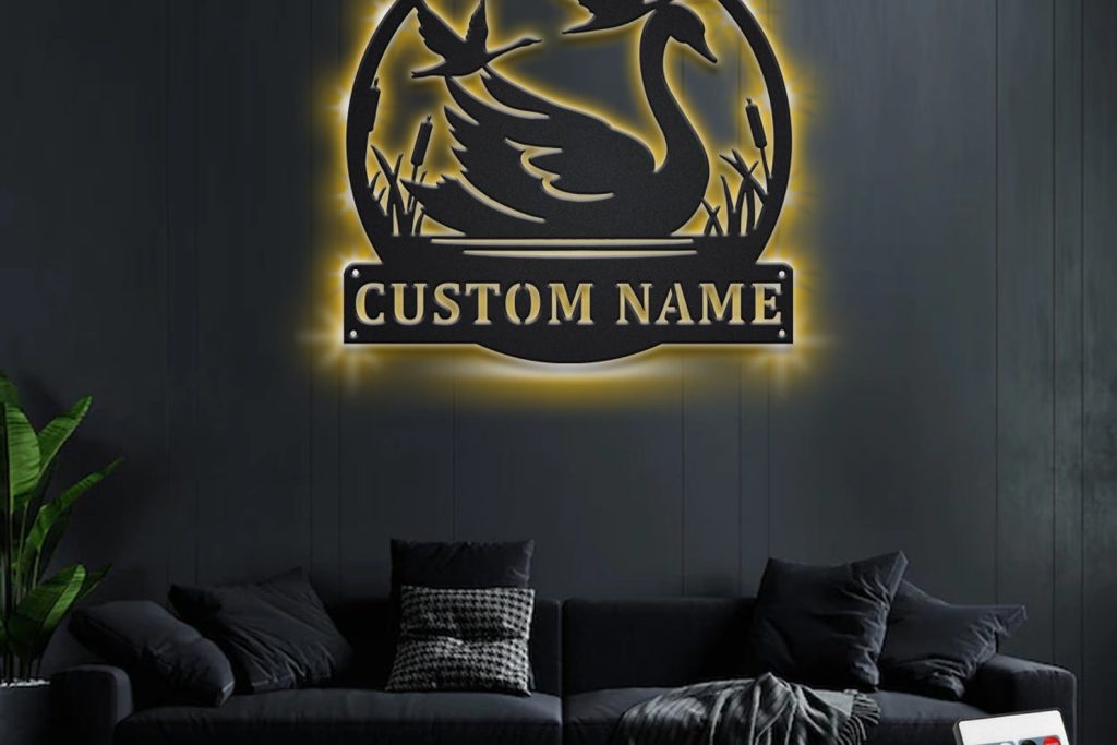 Custom Swan Metal Wall Art with LED – Personalized Name Sign