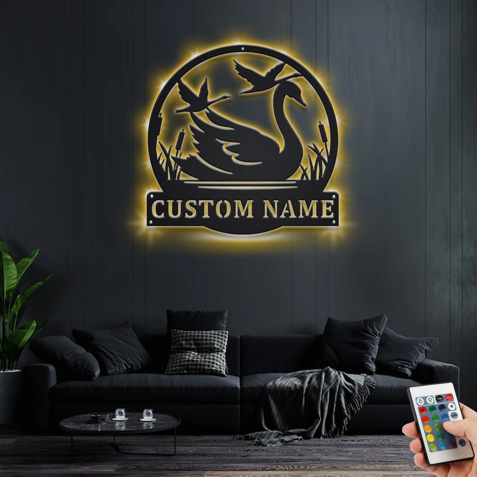 Be the first to review “Custom Swan Metal Wall Art with LED – Personalized Name Sign”