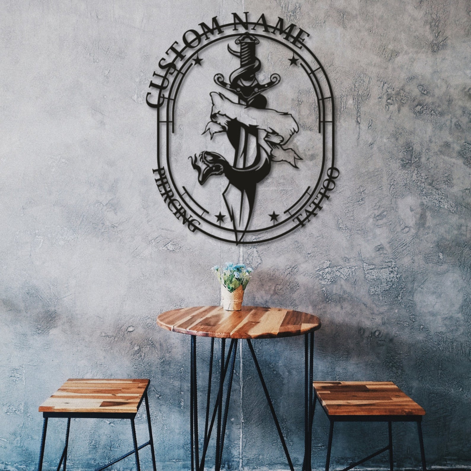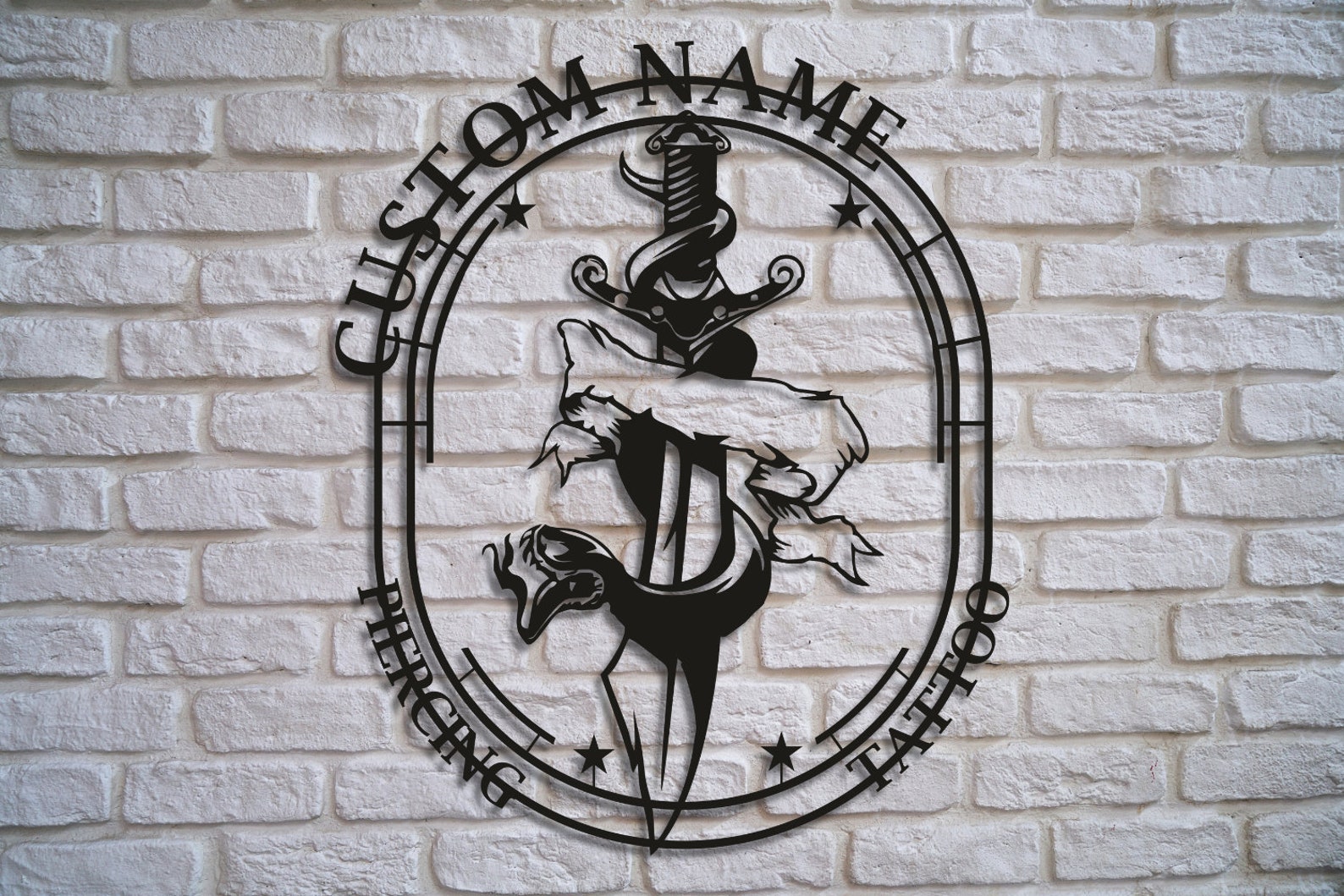 Custom Name Metal Wall Art, Custom Tattoo Wall Art, Tattoo Studio Sign, Tattoo Shop Sign, Personalized Monogram Sign, Metal Tattoo Sign