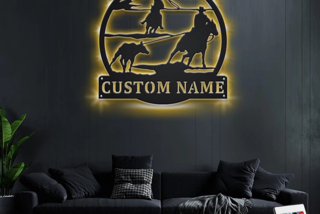 Be the first to review “Custom Team Roper Metal Sign with LED – Cowboy Room Decor”