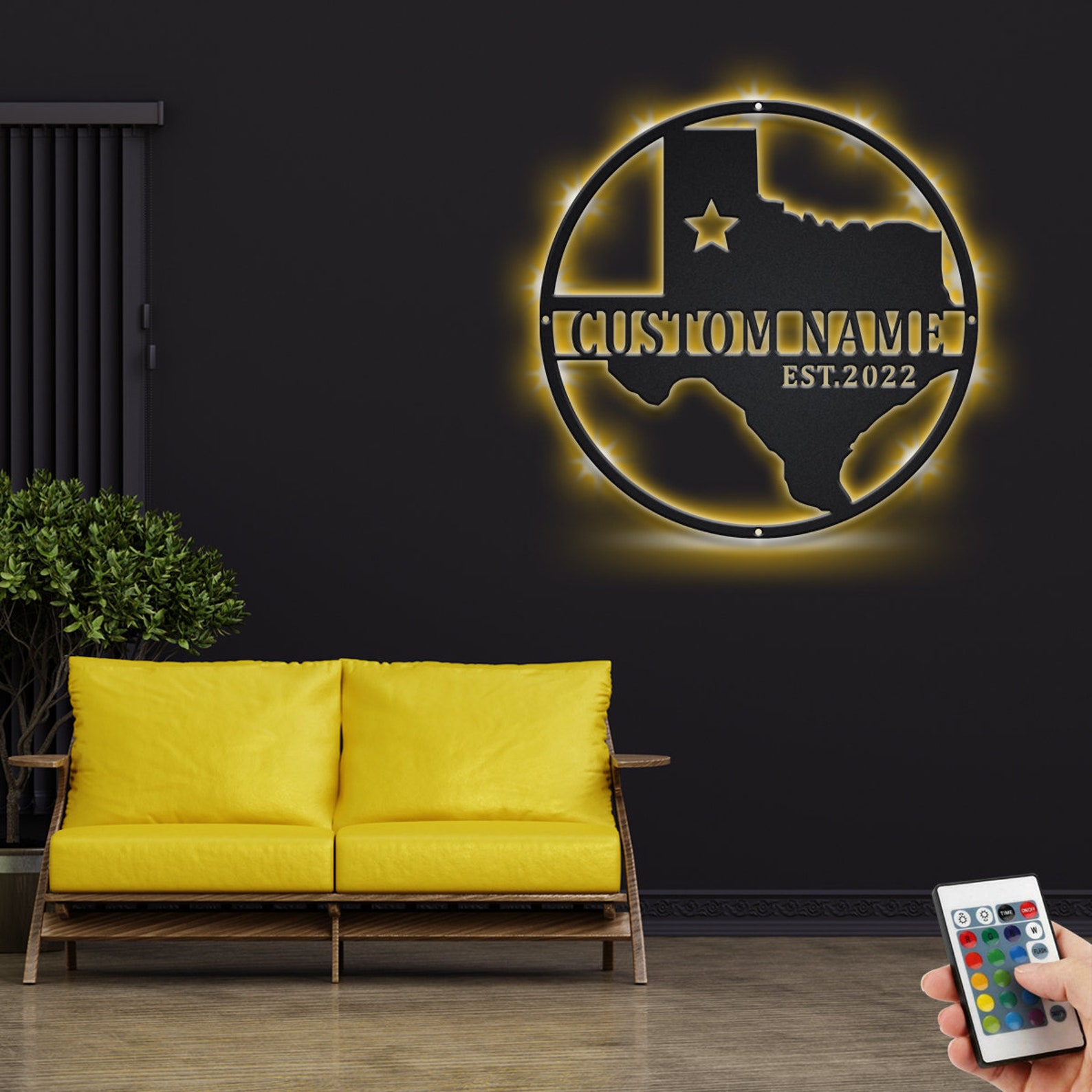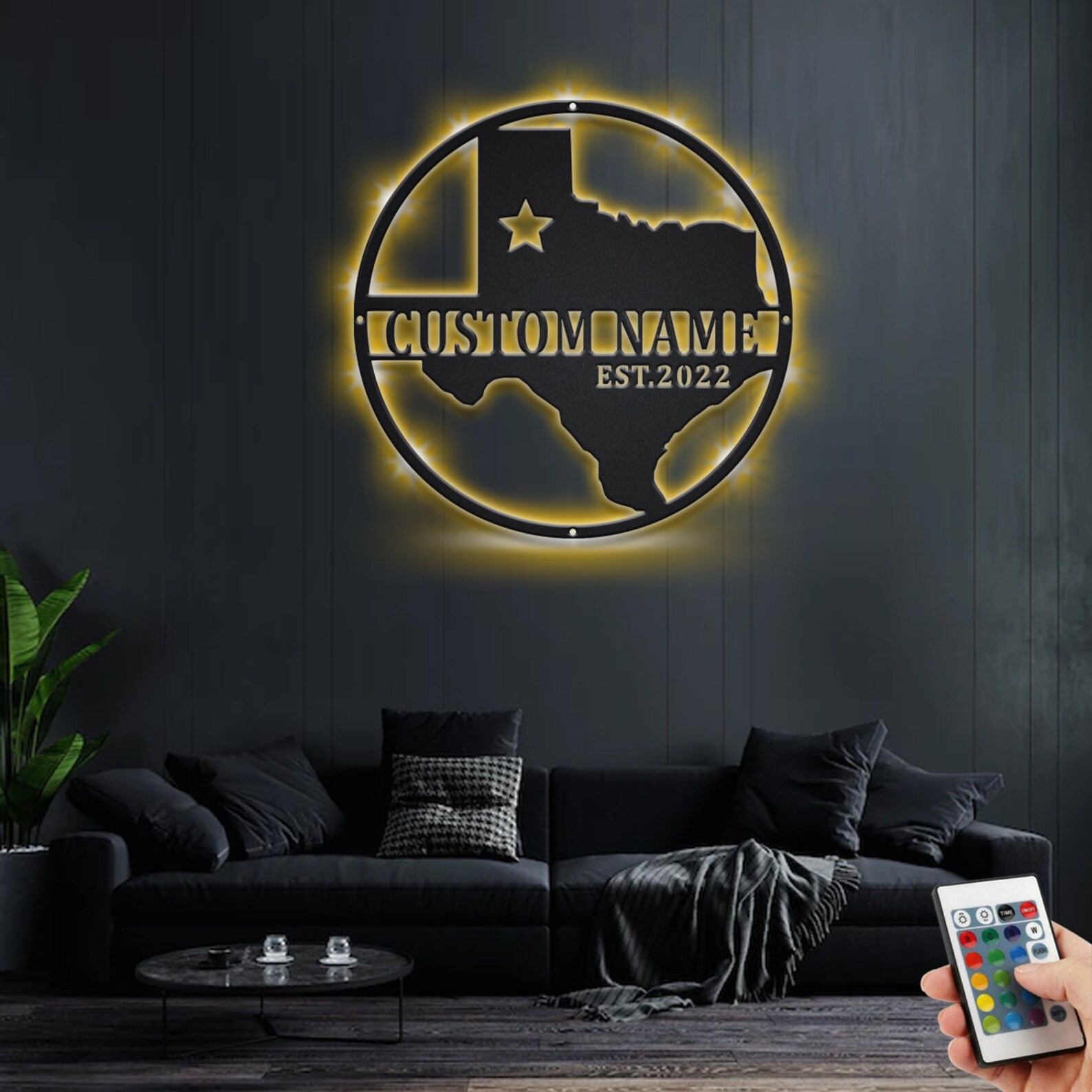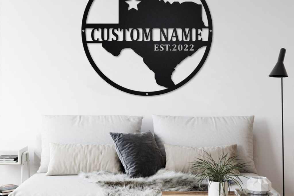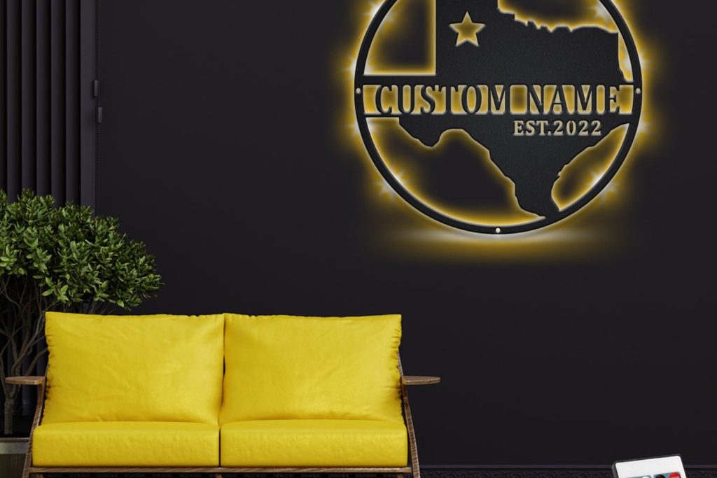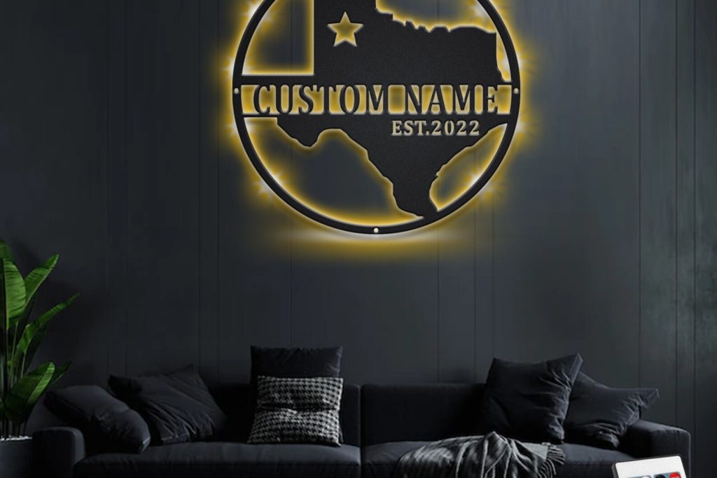 Custom Texas Metal Wall Art with LED & Name