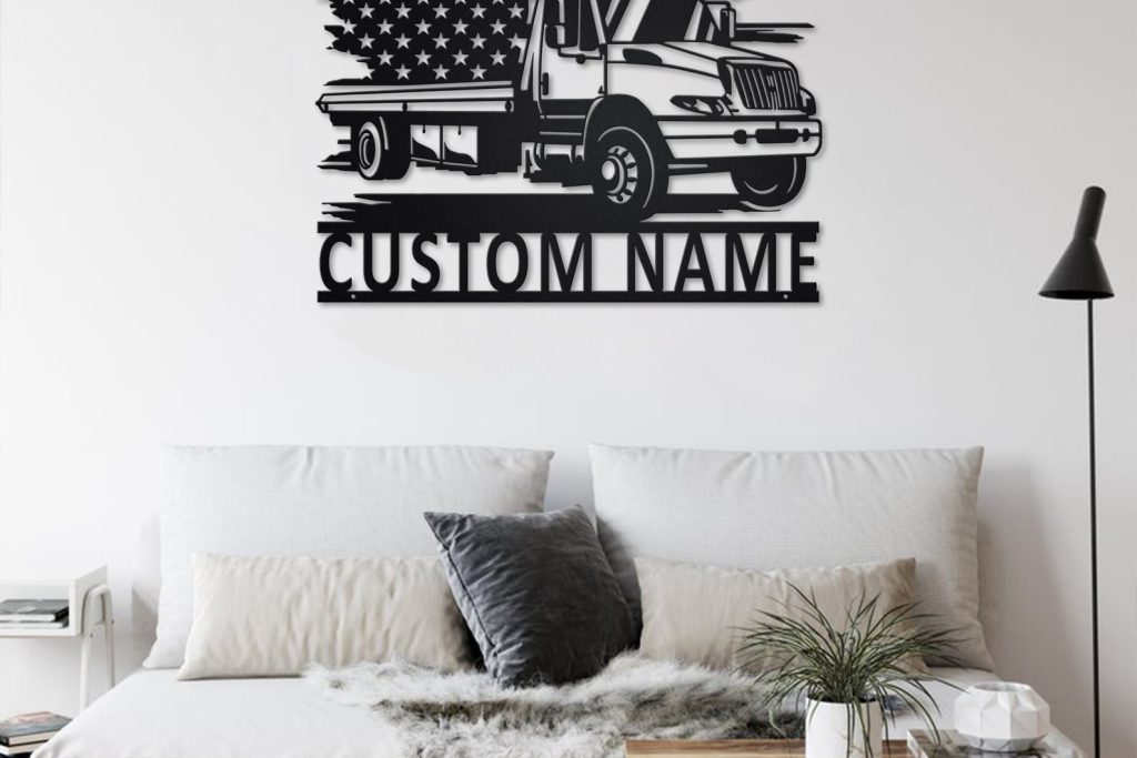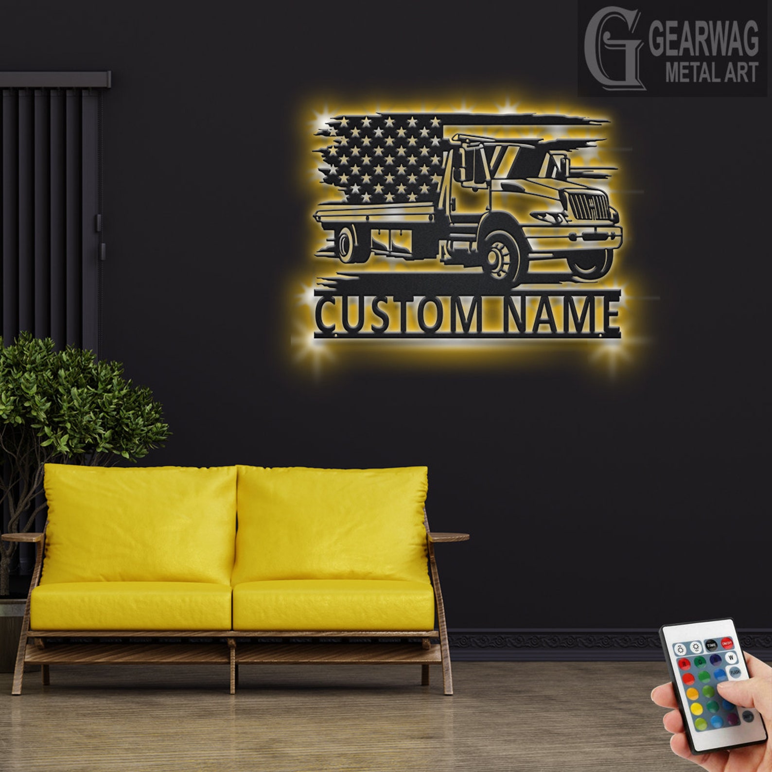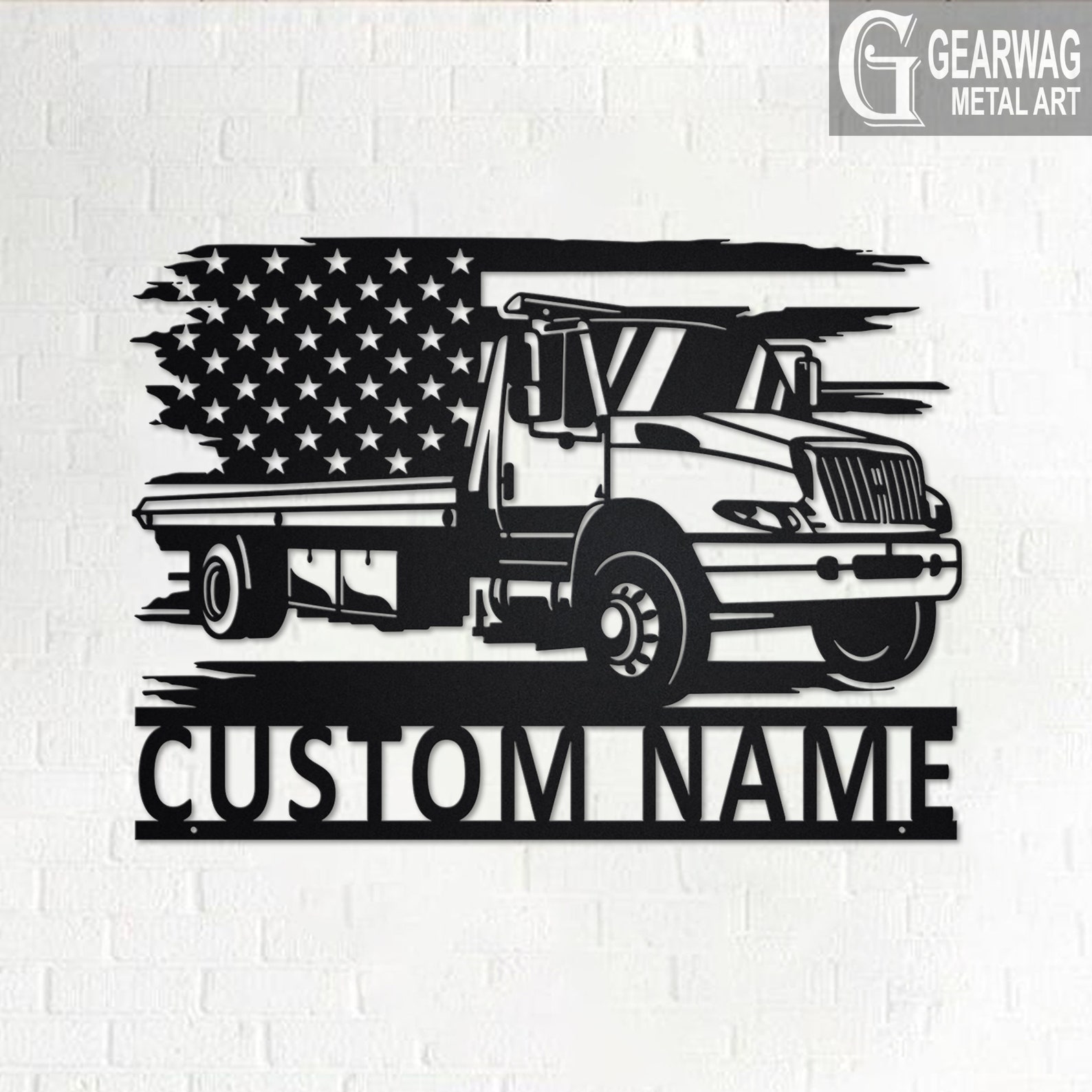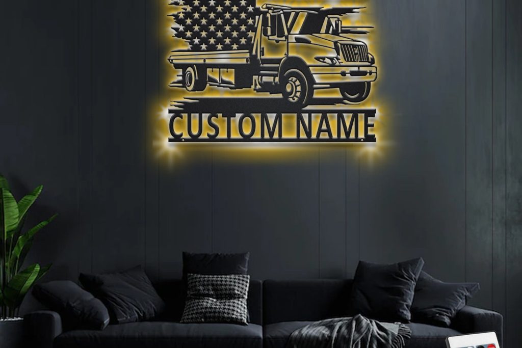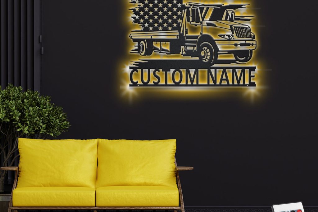 Custom Tow Truck Metal Sign, LED Light, Tow Trucker Name