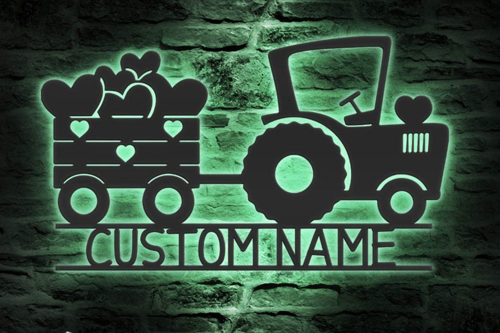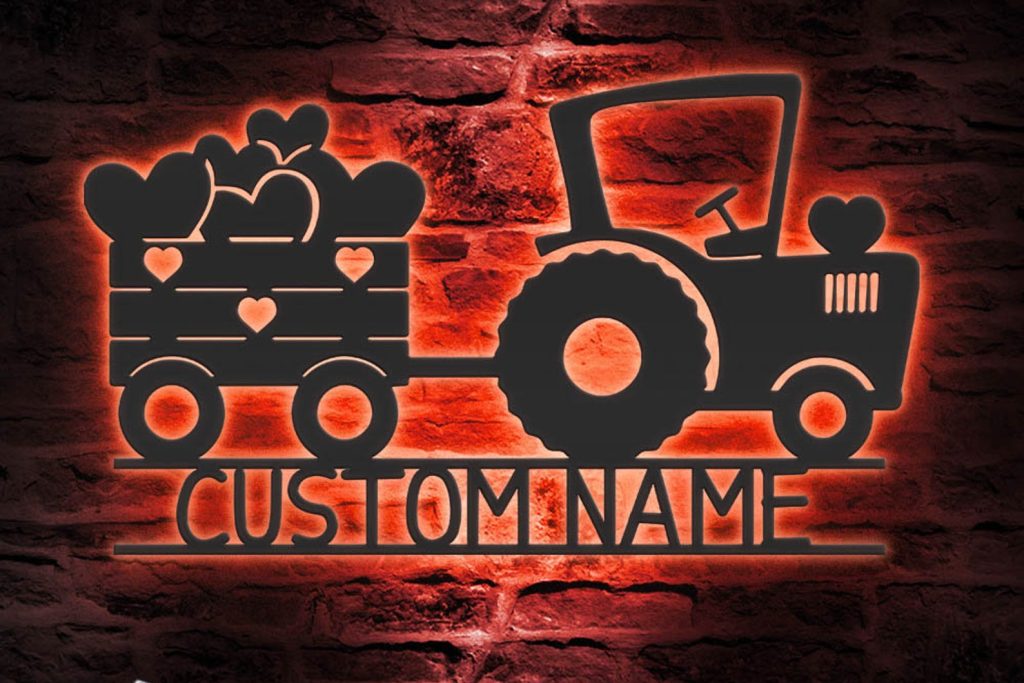 Custom Tractor Love Metal Sign with LED – Farmer Decor