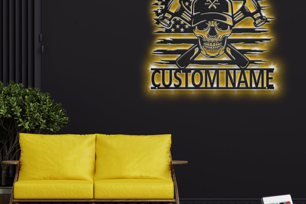 Custom US Carpenter Skull Metal Sign with LED – Room Decor