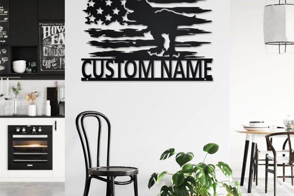 Custom US Dinosaur Metal Sign with LED – Living Room Decor