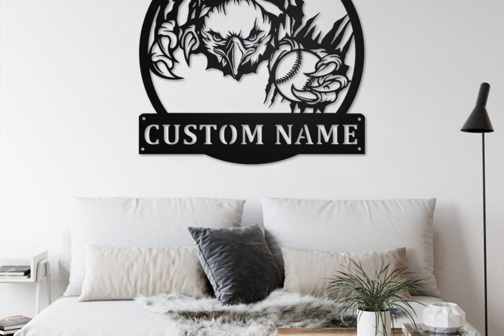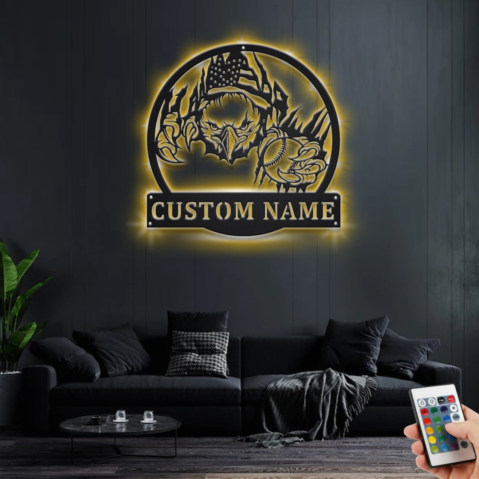 Custom US Eagle Baseball Metal Sign with LED – Player Decor