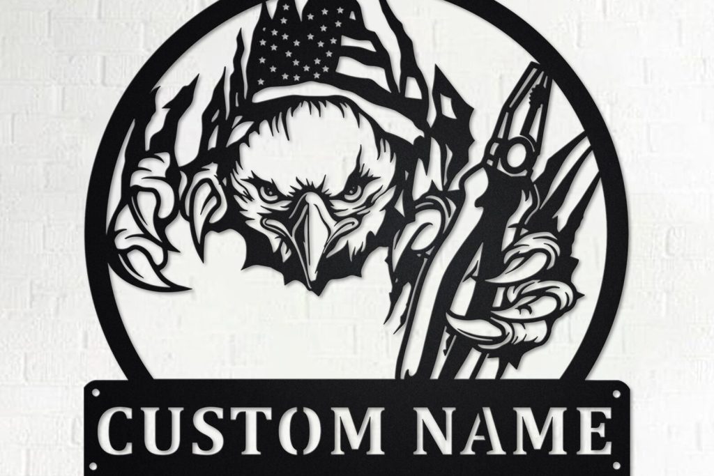 Custom US Eagle Electrician Metal Sign with LED – Decor