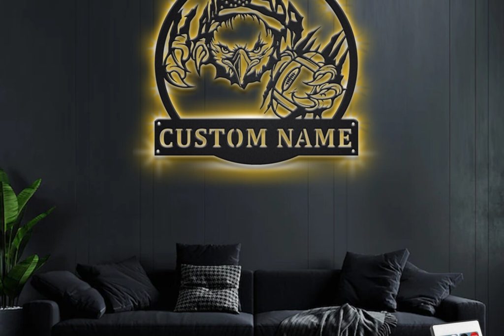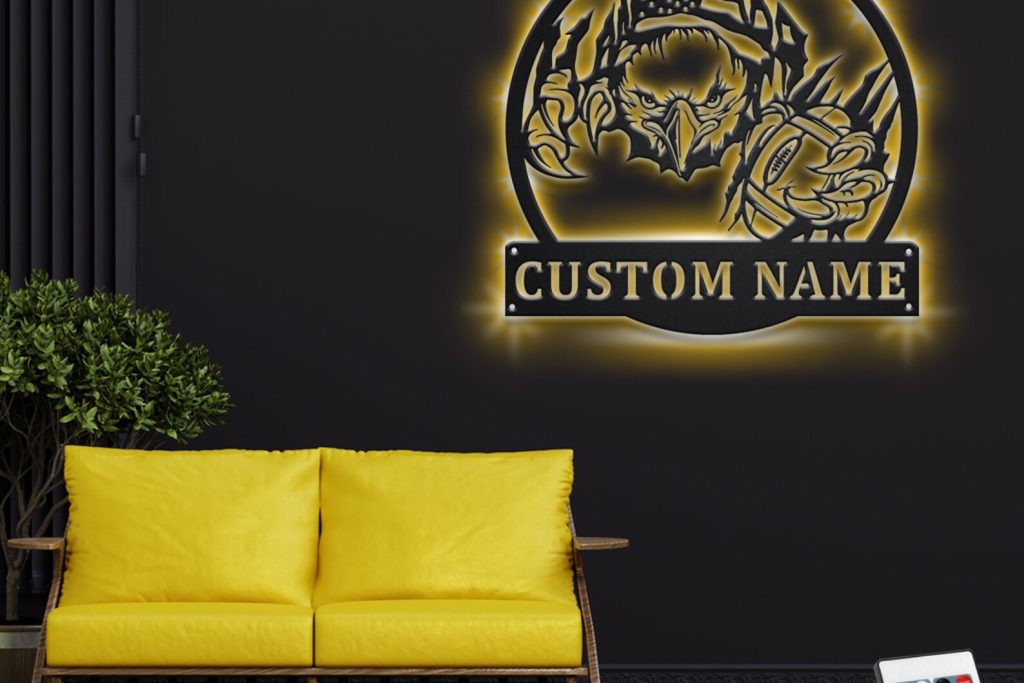 Be the first to review “Custom US Eagle Football Metal Art with LED Light”