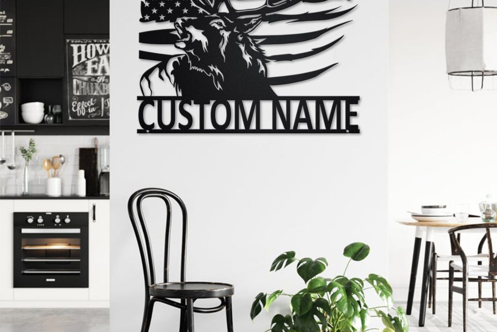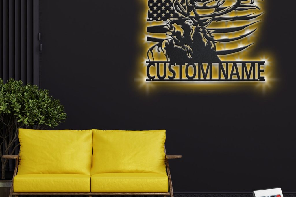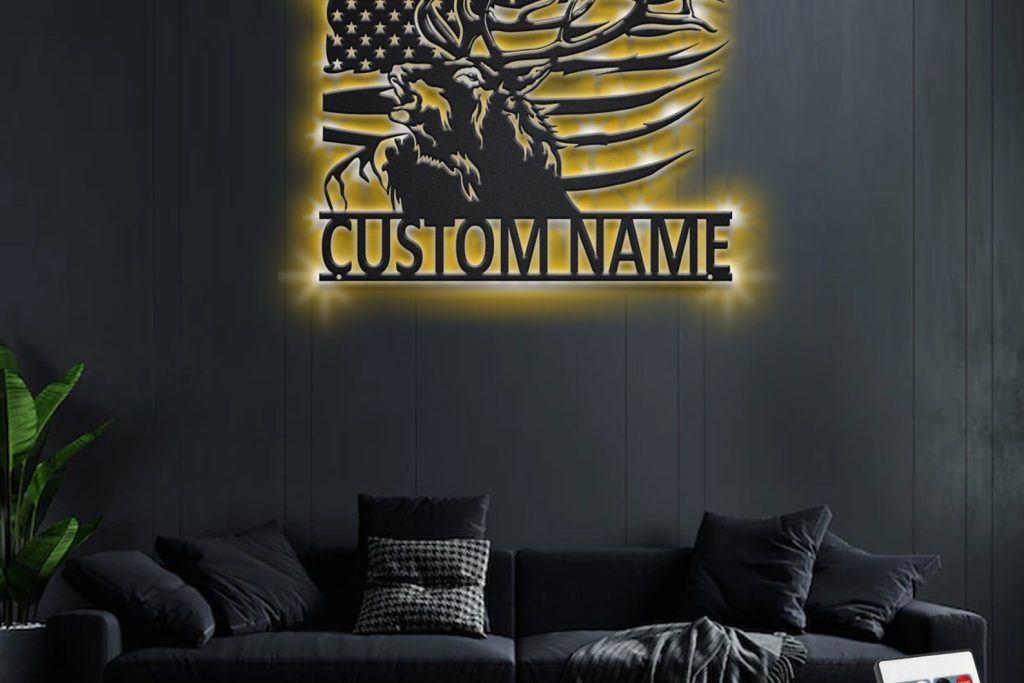Custom US Elk Deer Metal Sign with LED – Room Decor