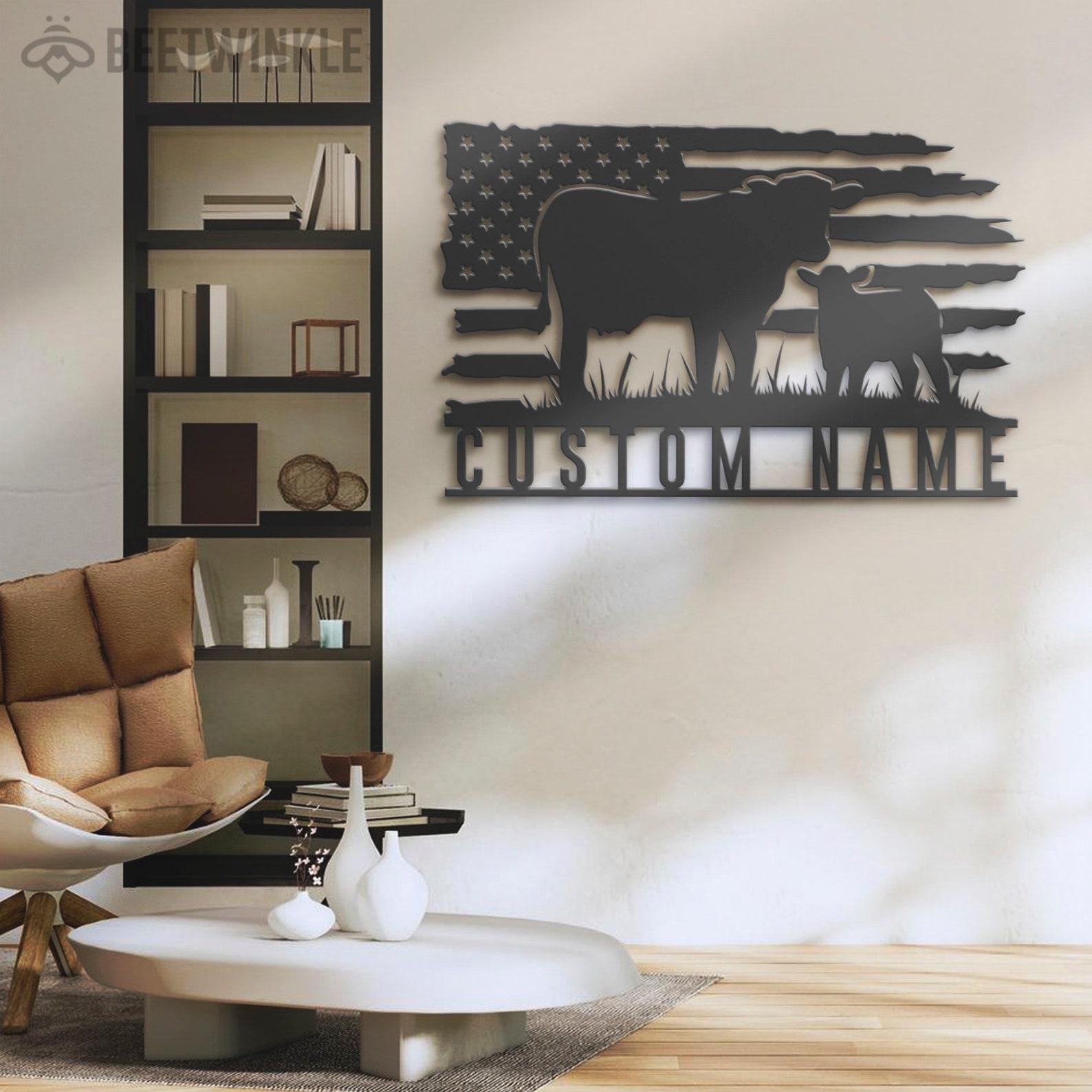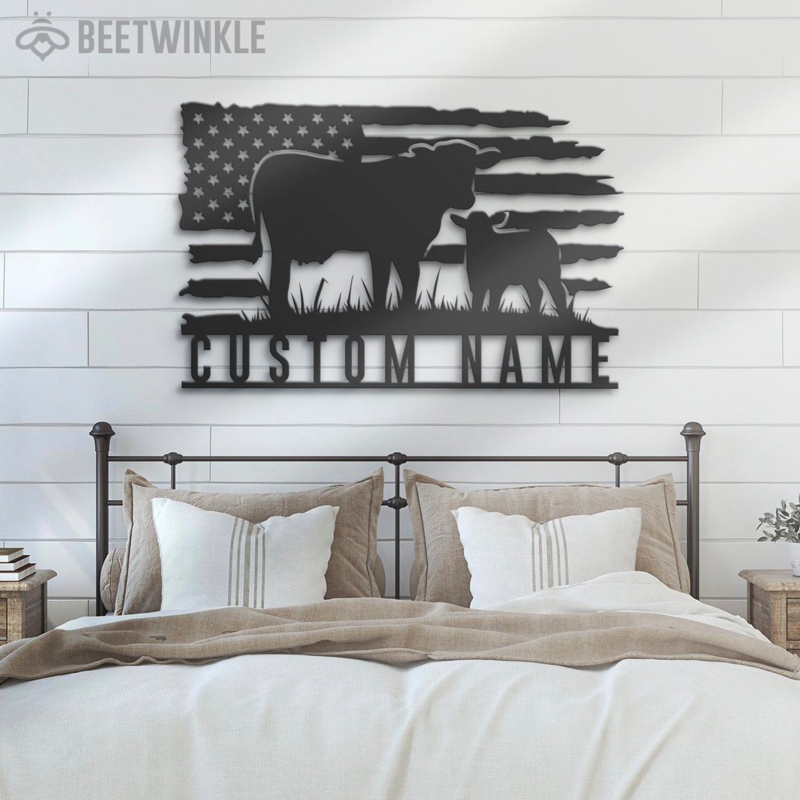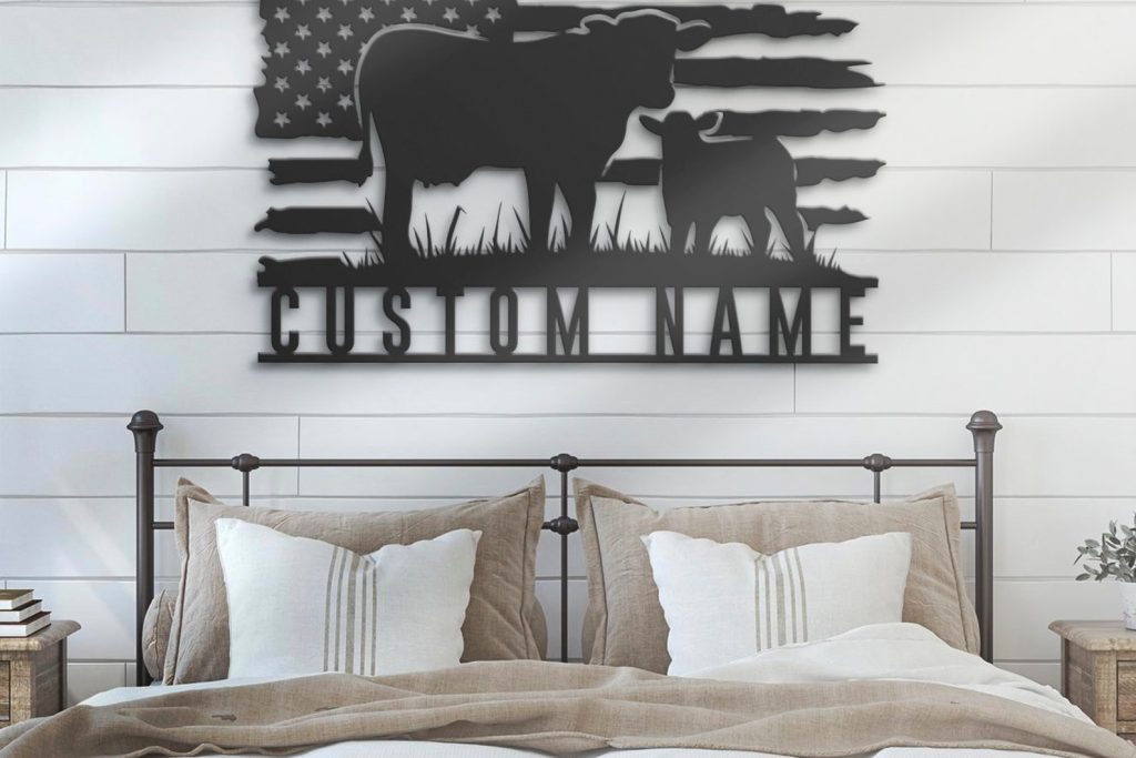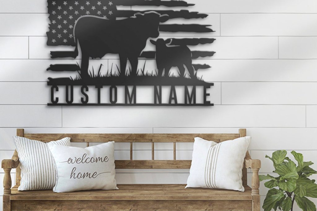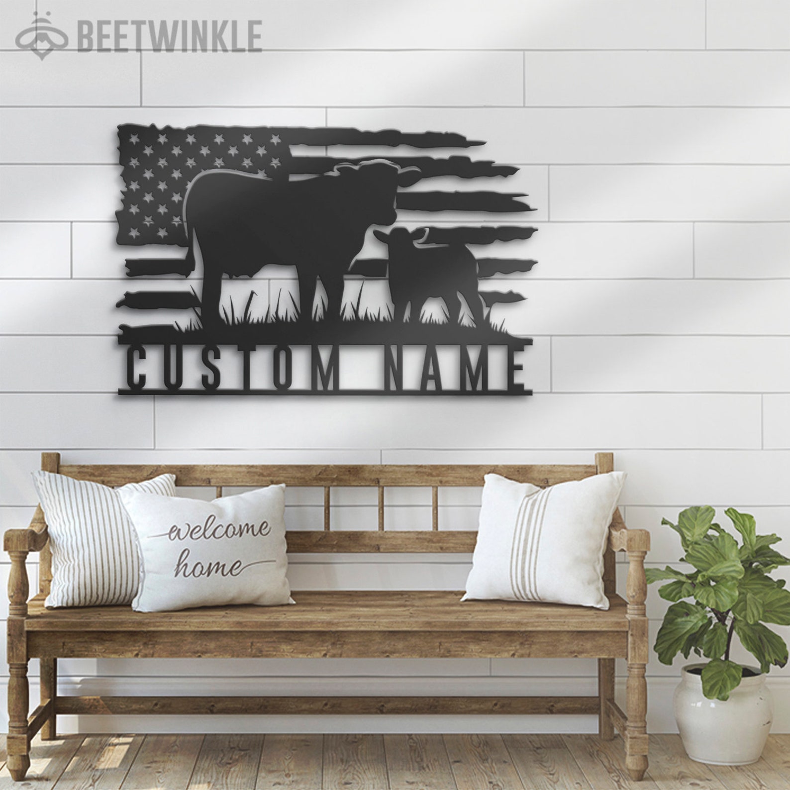 Be the first to review “Custom US Flag Cow Metal Sign with LED – Farm Decor”