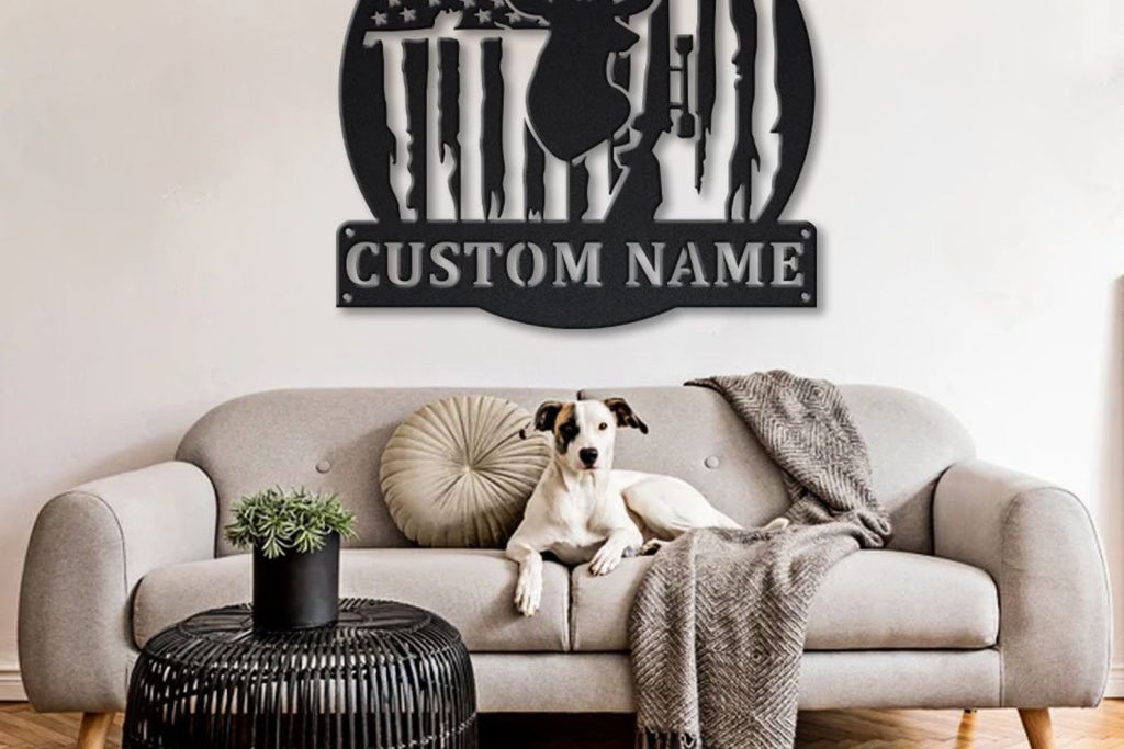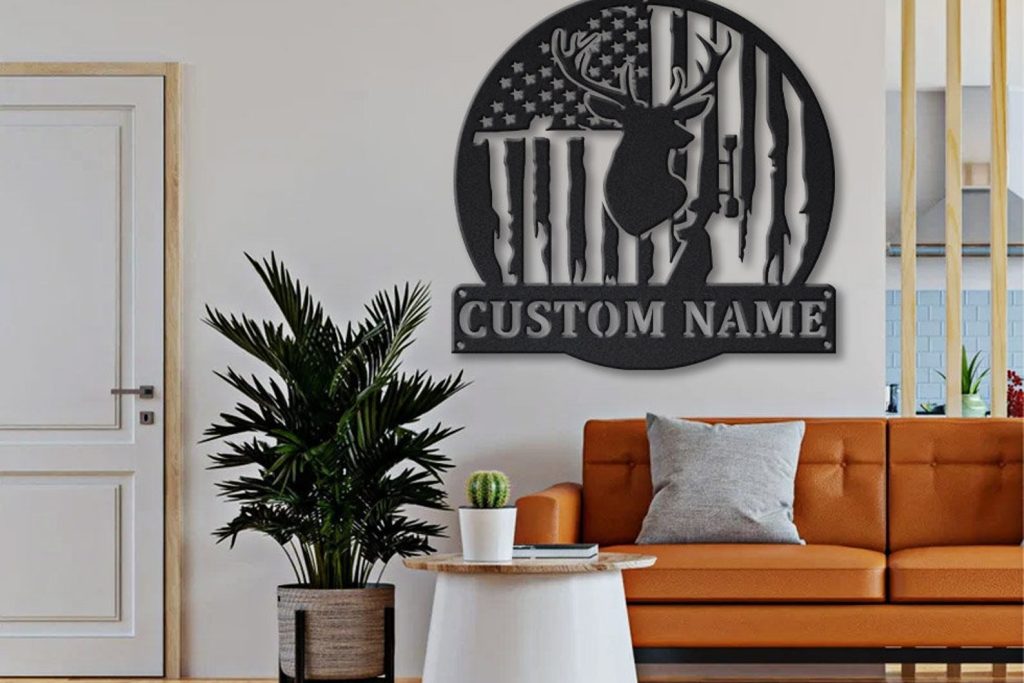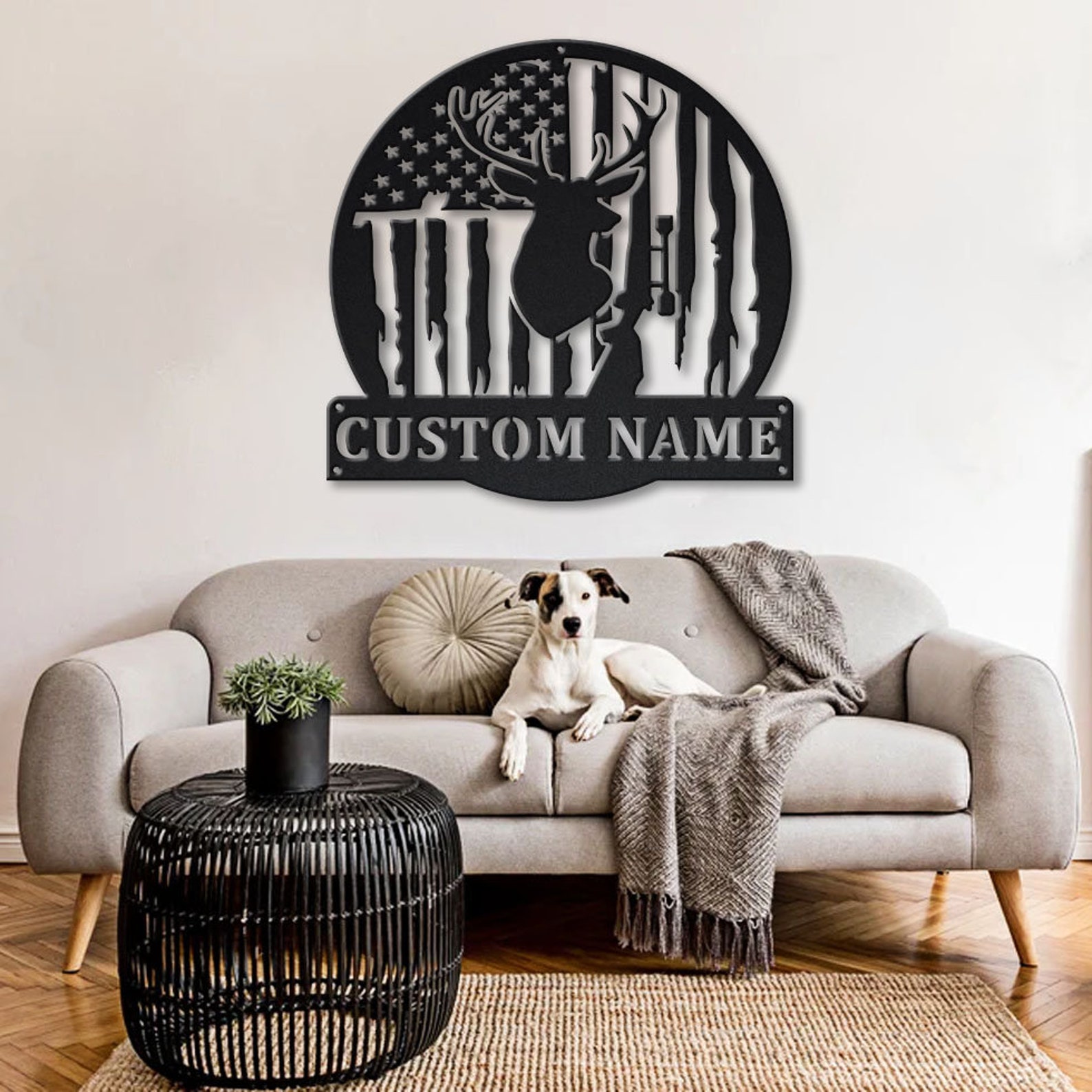 Custom US Flag Deer Hunting Metal Wall Art – LED Lights, Deer Hunter Decor