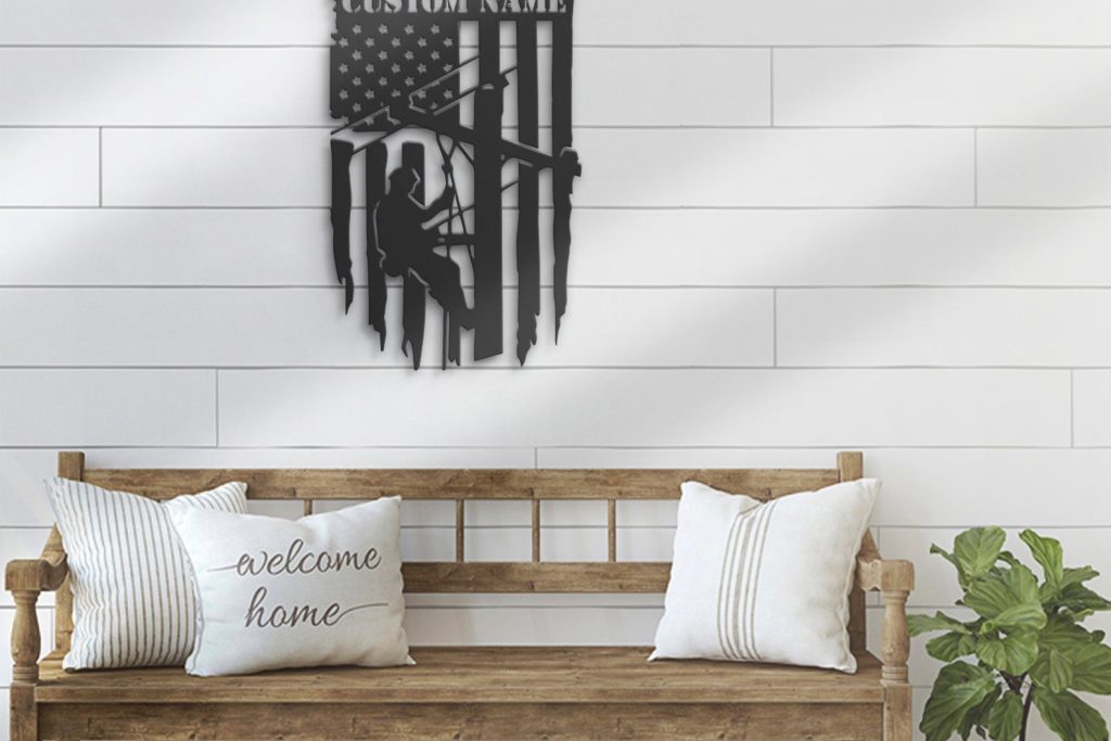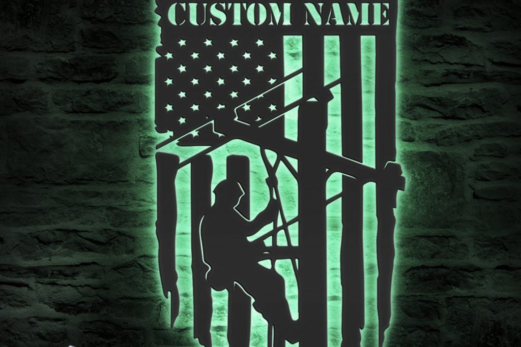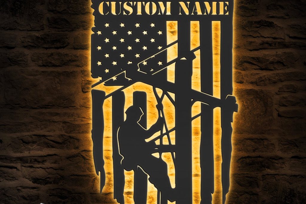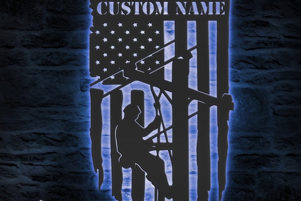 Be the first to review “Custom US Lineman Metal Art with LED Light”