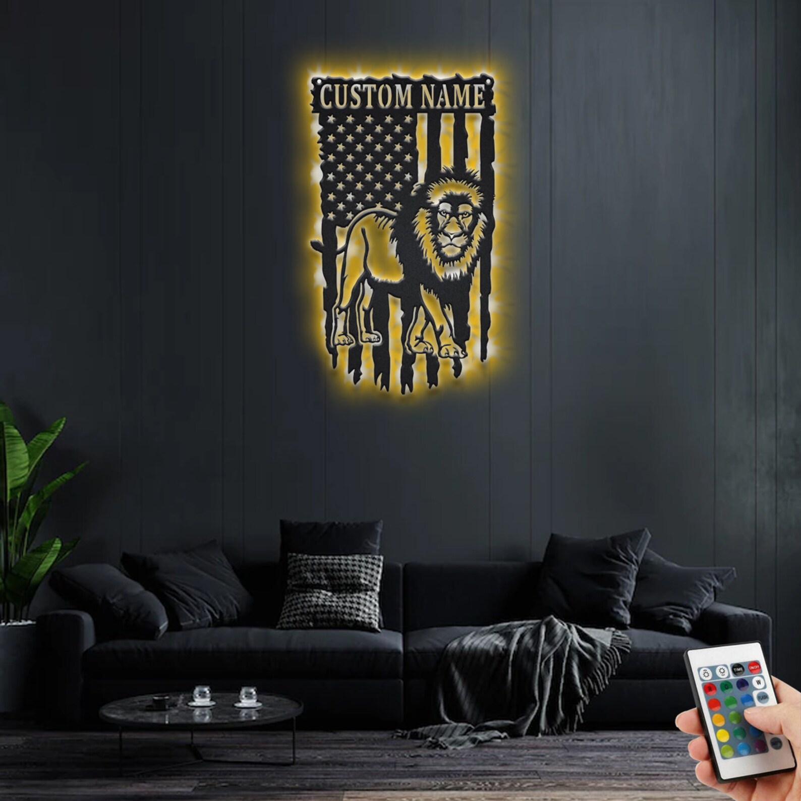 Be the first to review “Custom US Lion Metal Sign with LED – Room Decoration”