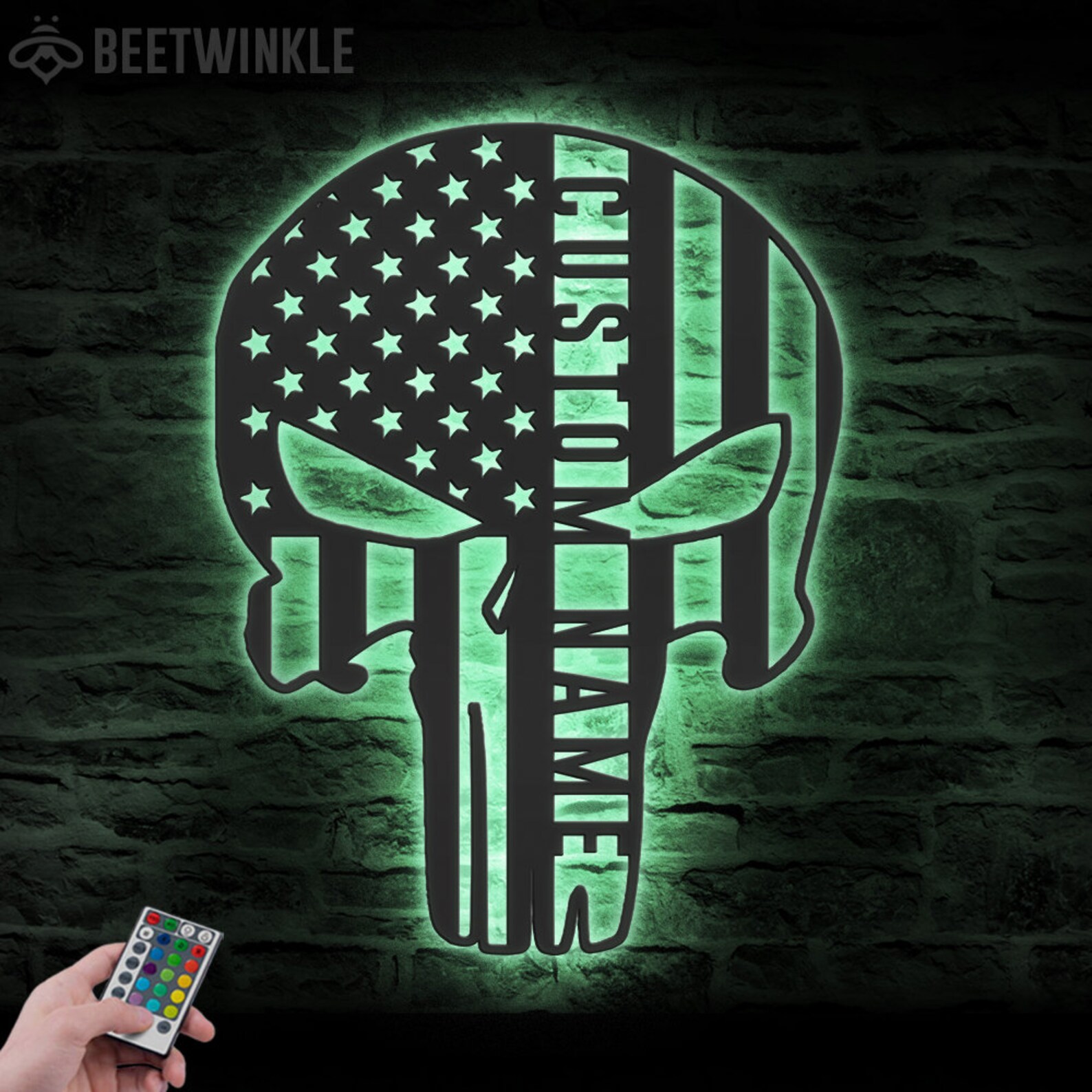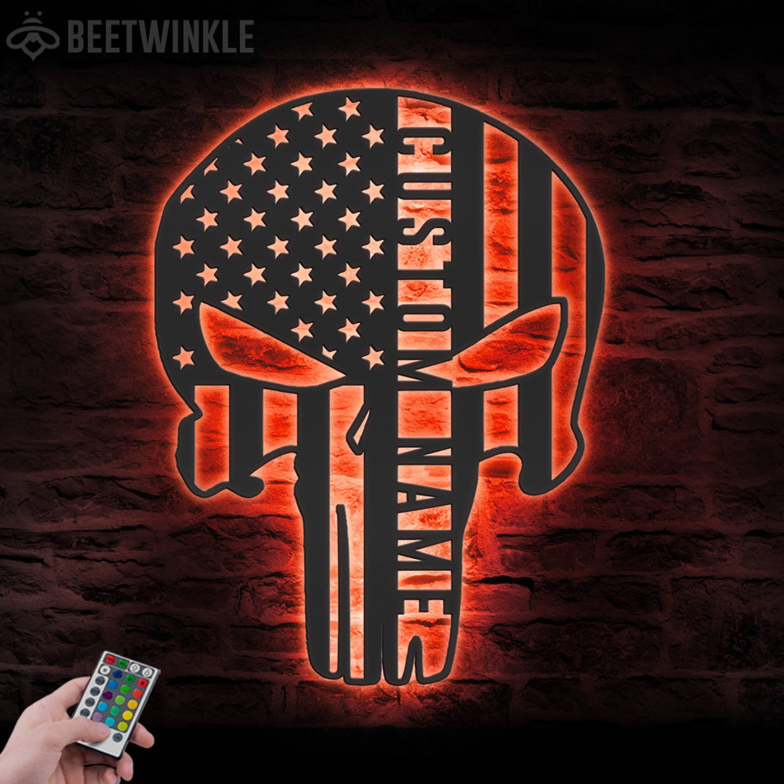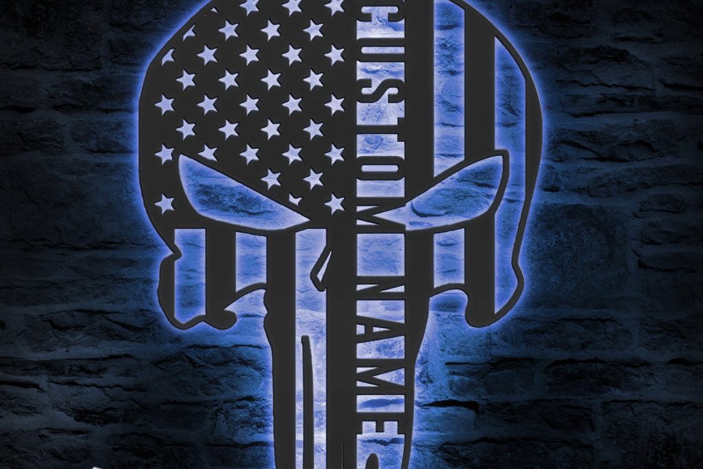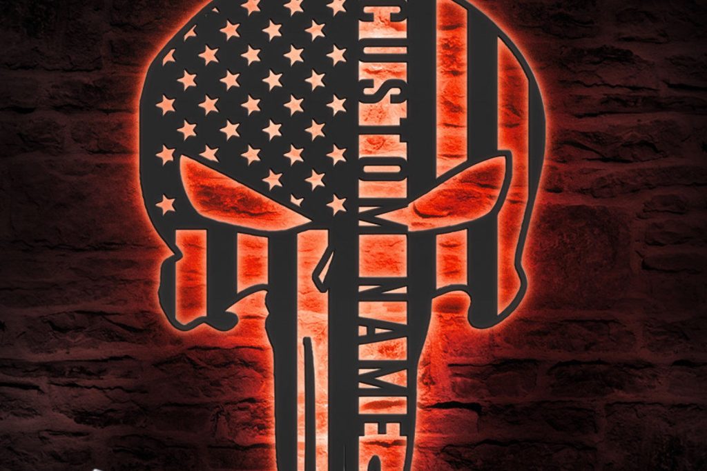 Custom US Punisher Skull Metal Art with LED Light
