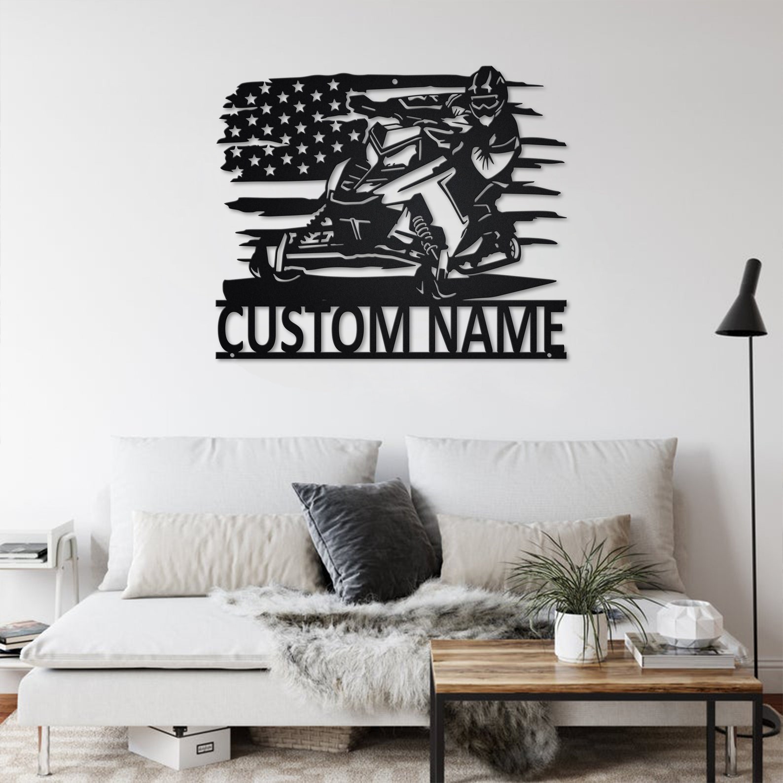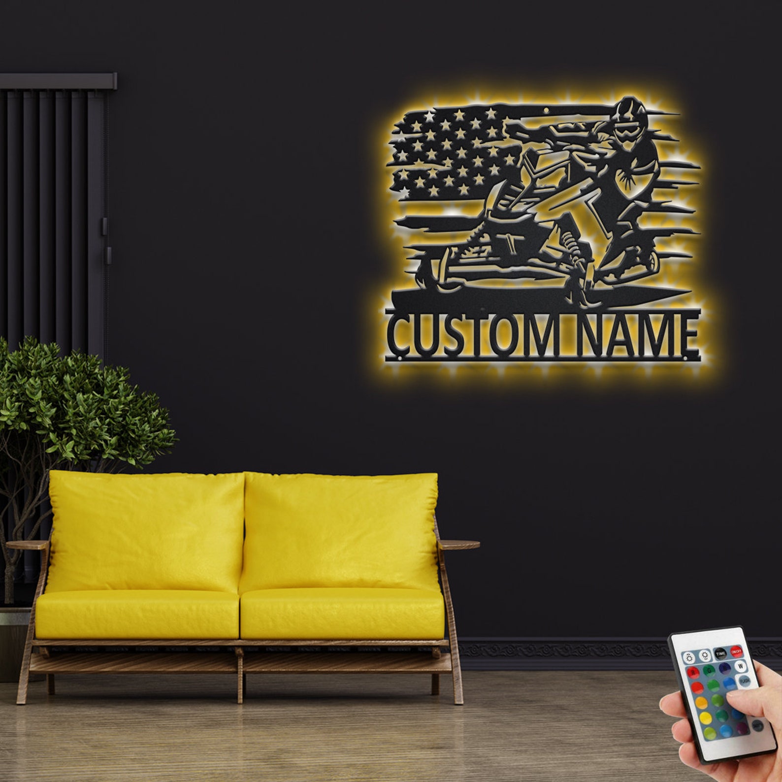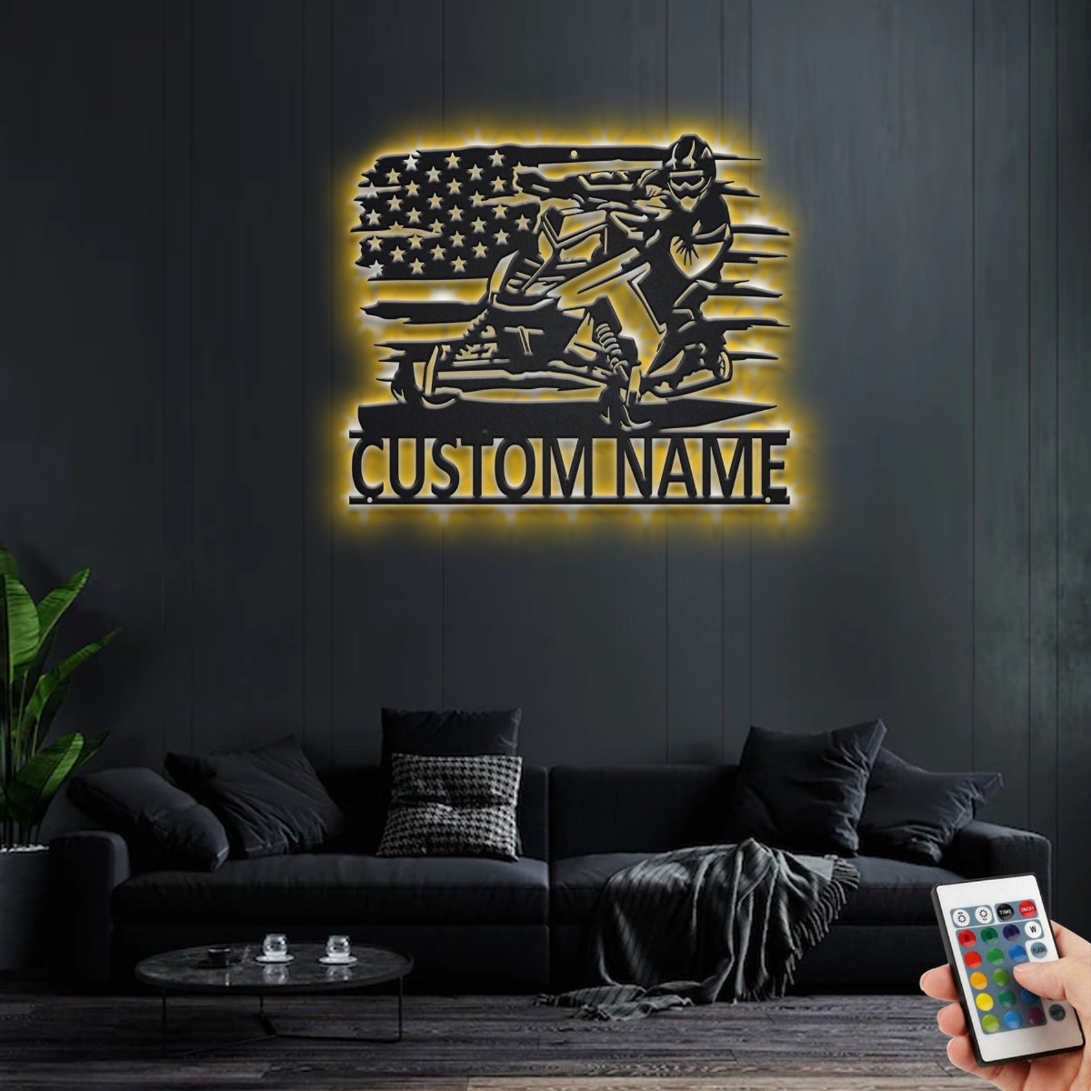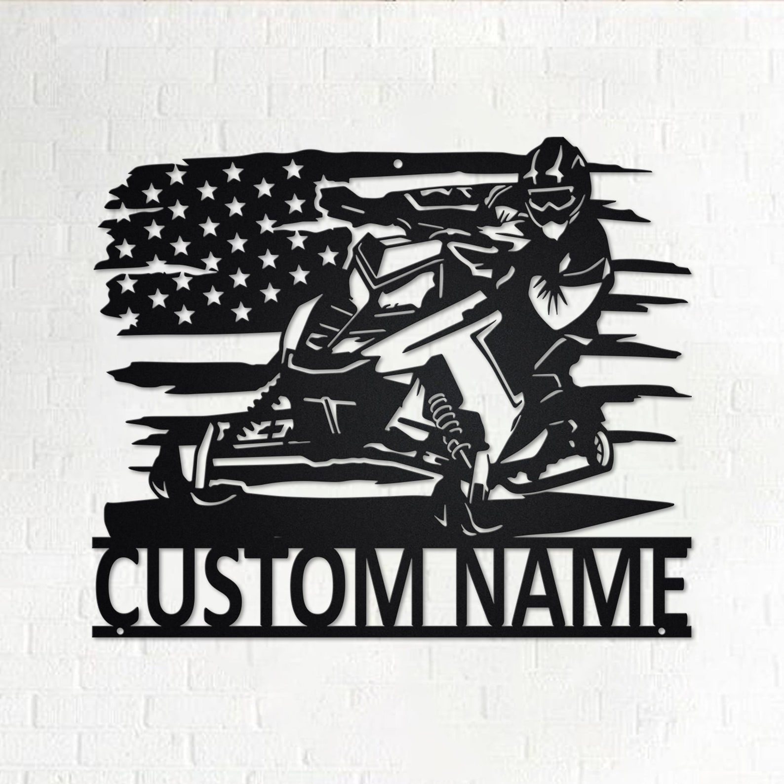 Custom US Snowmobile Rider Metal Sign with LED – Room Decor