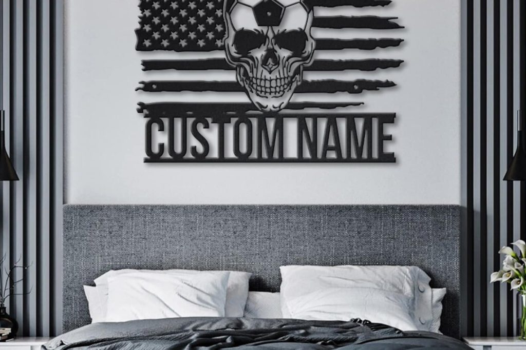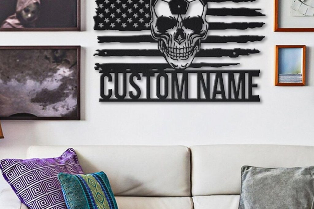 Be the first to review “Custom US Soccer Skull Metal Sign with LED – Wall Decor”