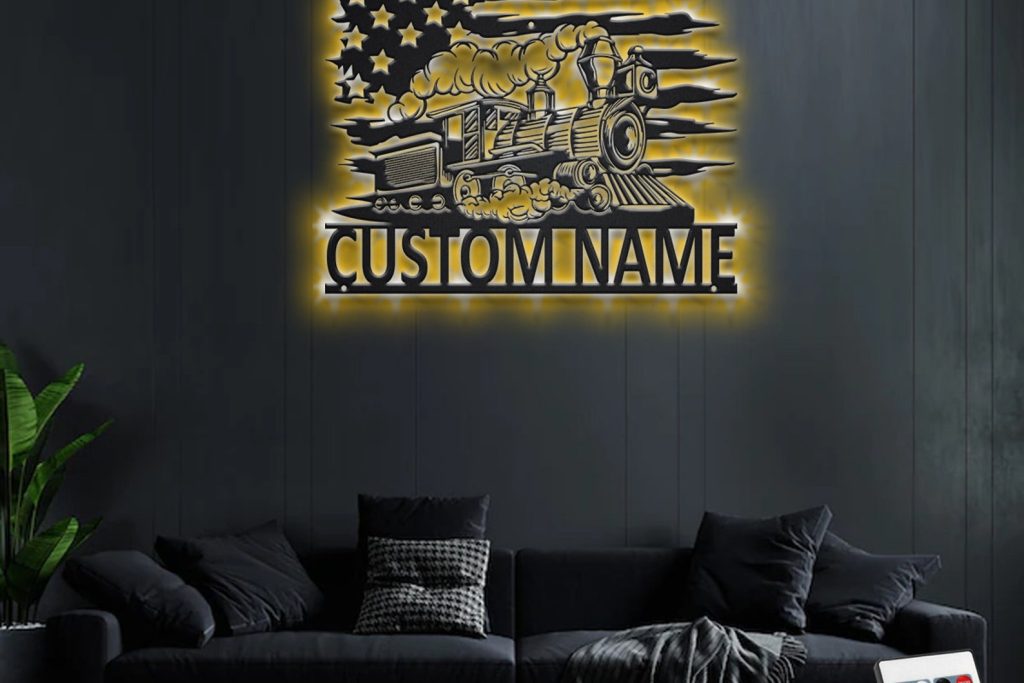 Be the first to review “Custom US Train Metal Sign with LED – Room Decoration”