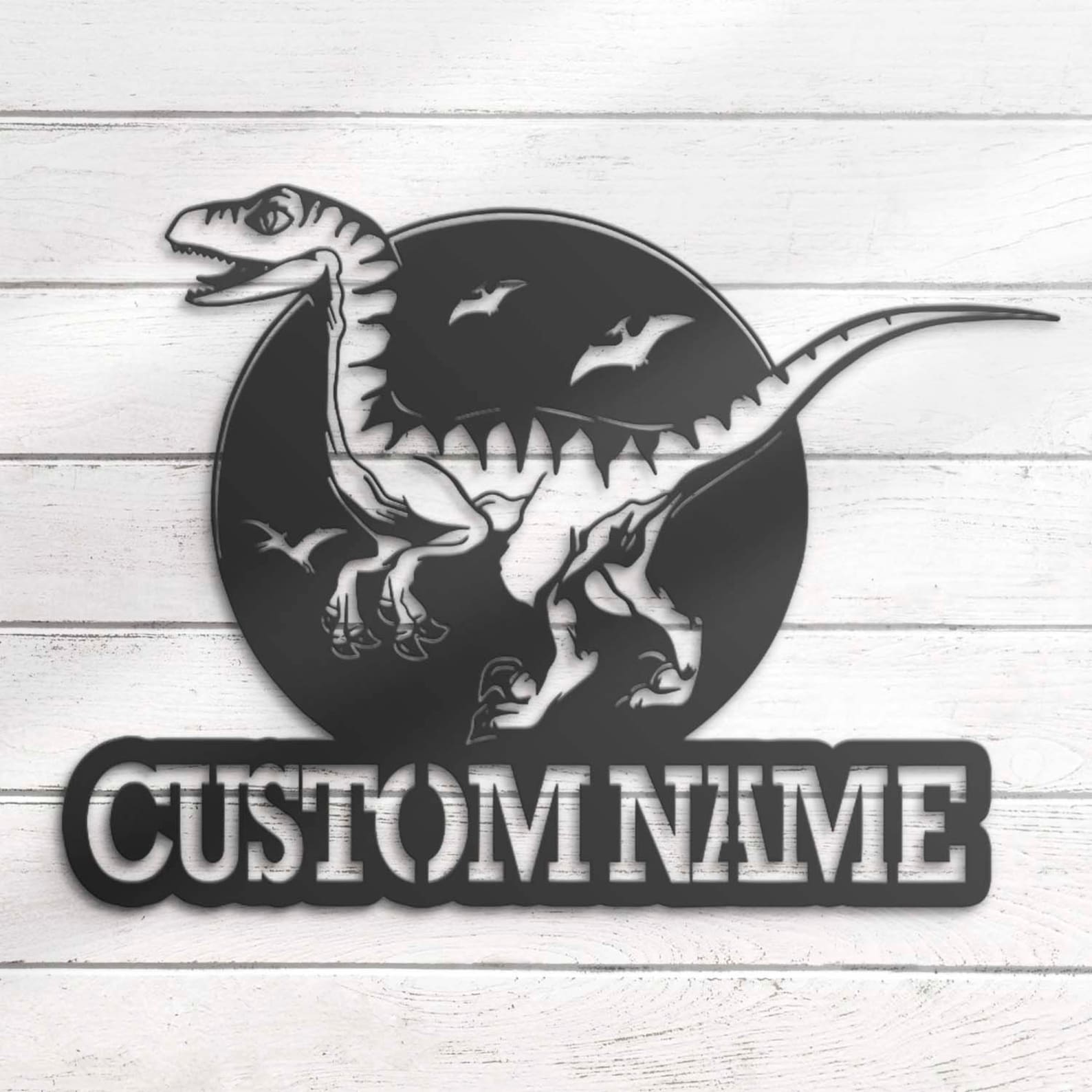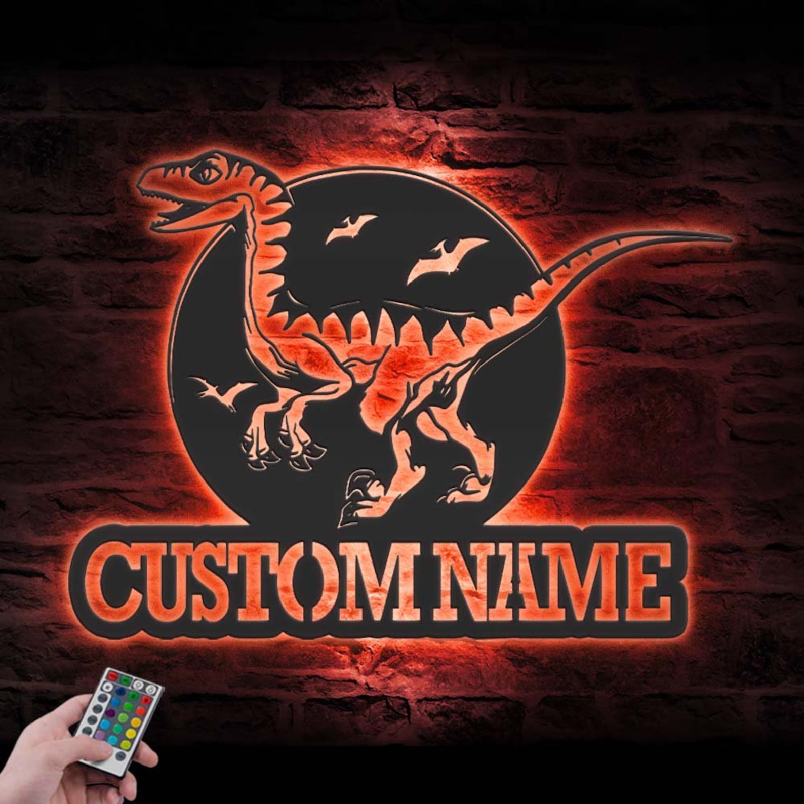 Be the first to review “Custom Velociraptor LED Metal Art – Dino Name Sign”