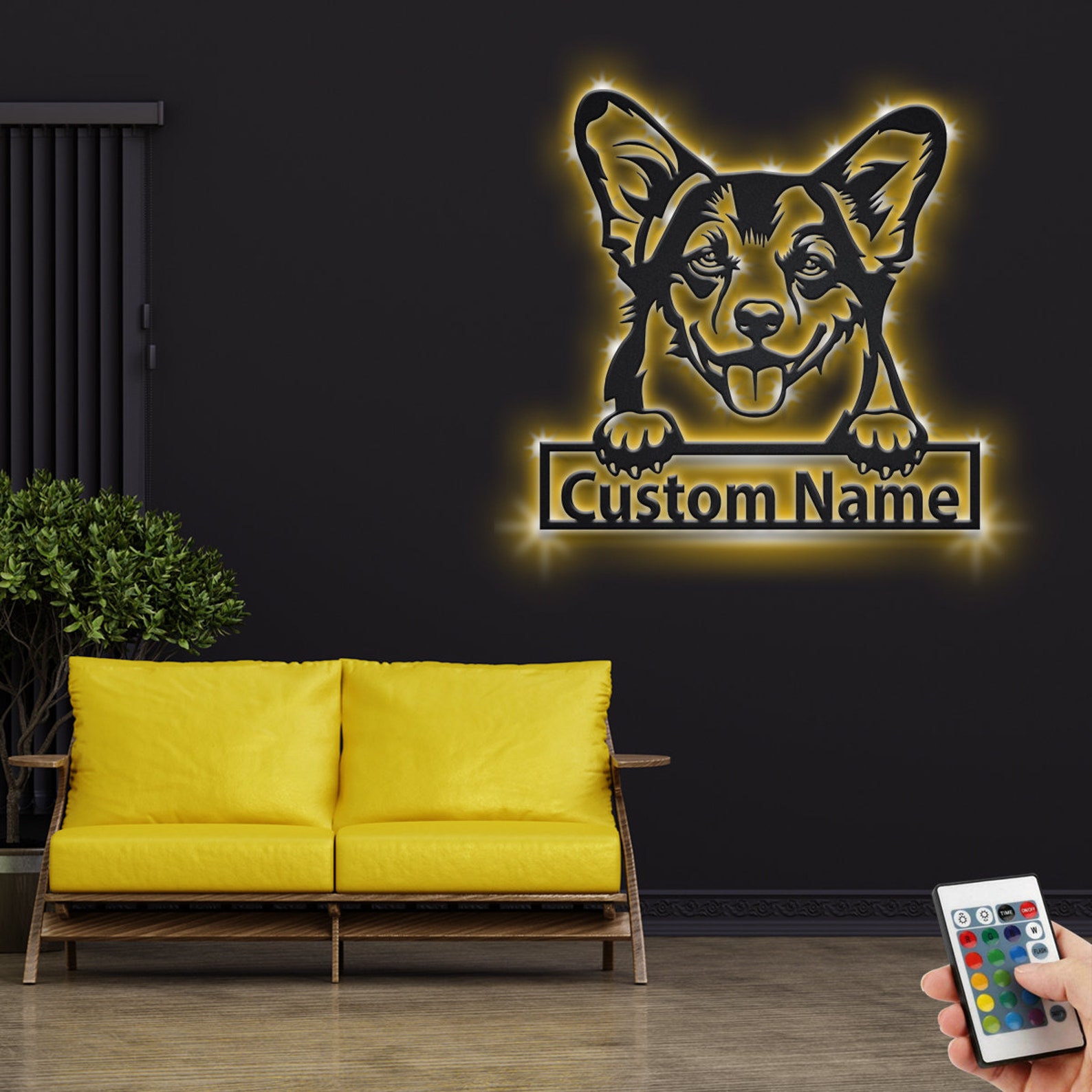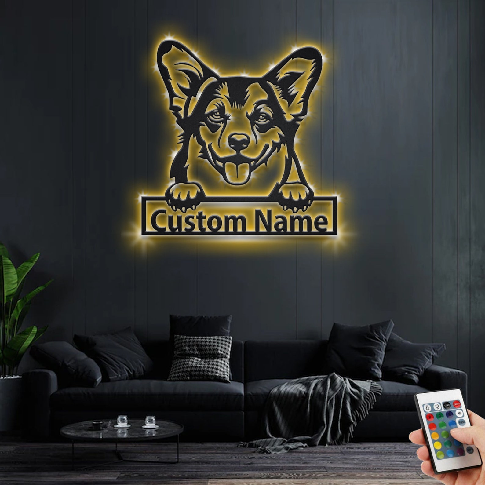 Custom Welsh Corgi Metal Sign with LED – Room Decoration