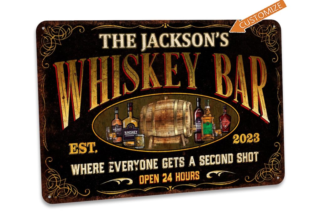 Custom Whiskey Bar Sign Vintage Design Personalized Metal Sign Home Bar Decor Man Cave Sign Pub Tavern Bourbon Gift For Him 108122002165