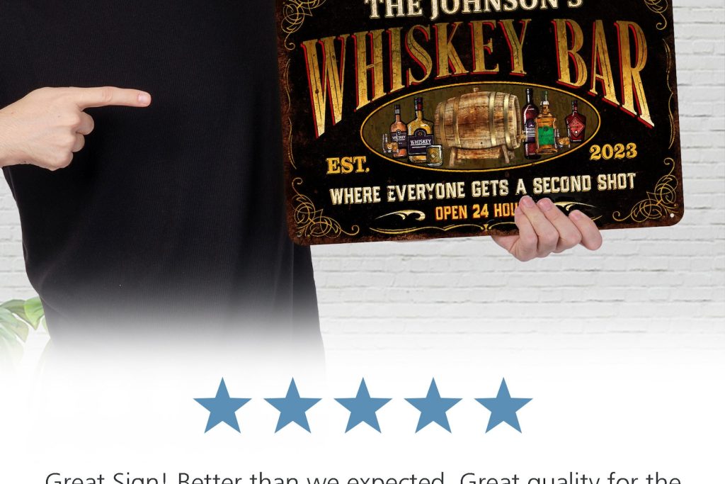 Be the first to review “Custom Whiskey Bar Sign – Vintage Design, Personalized Metal Sign”