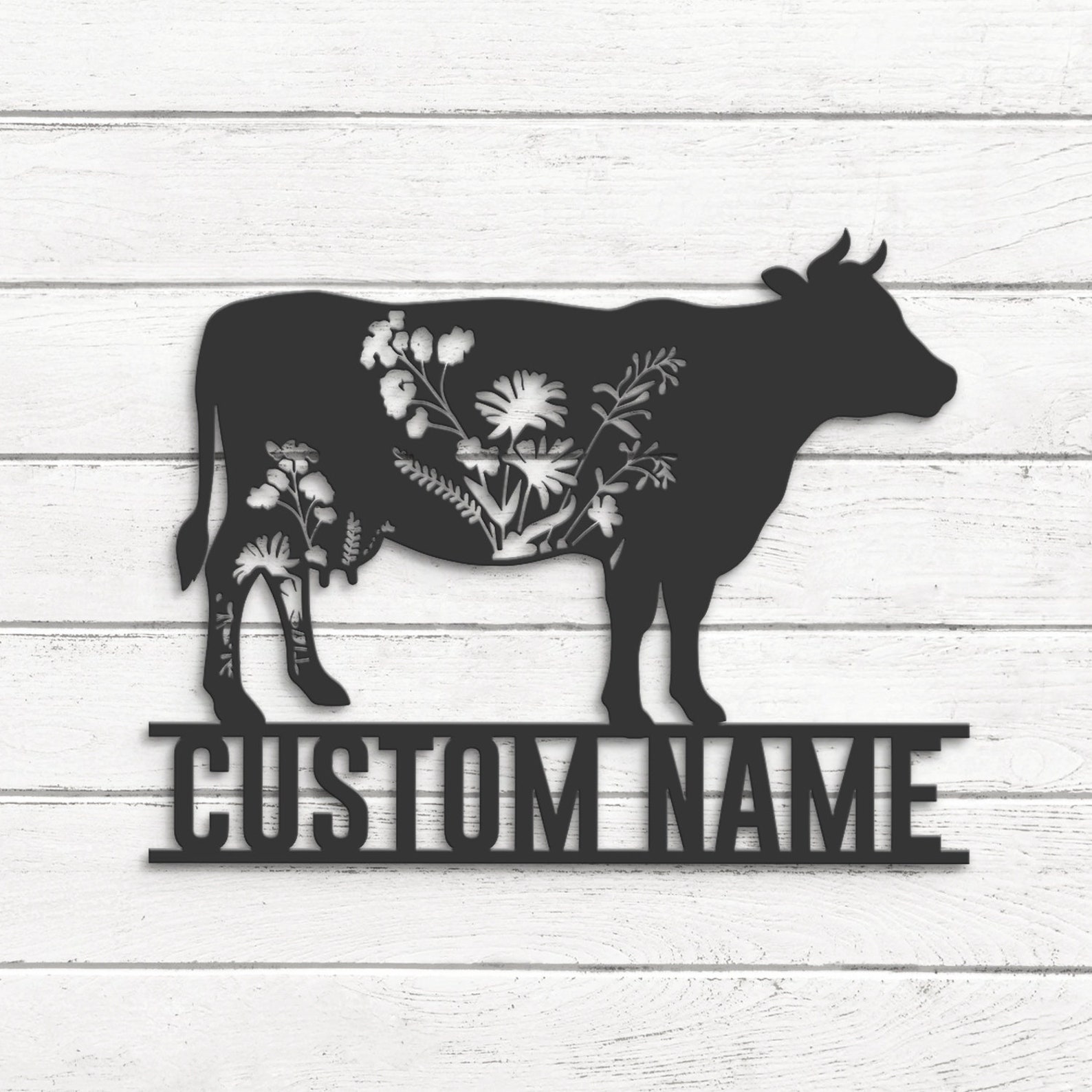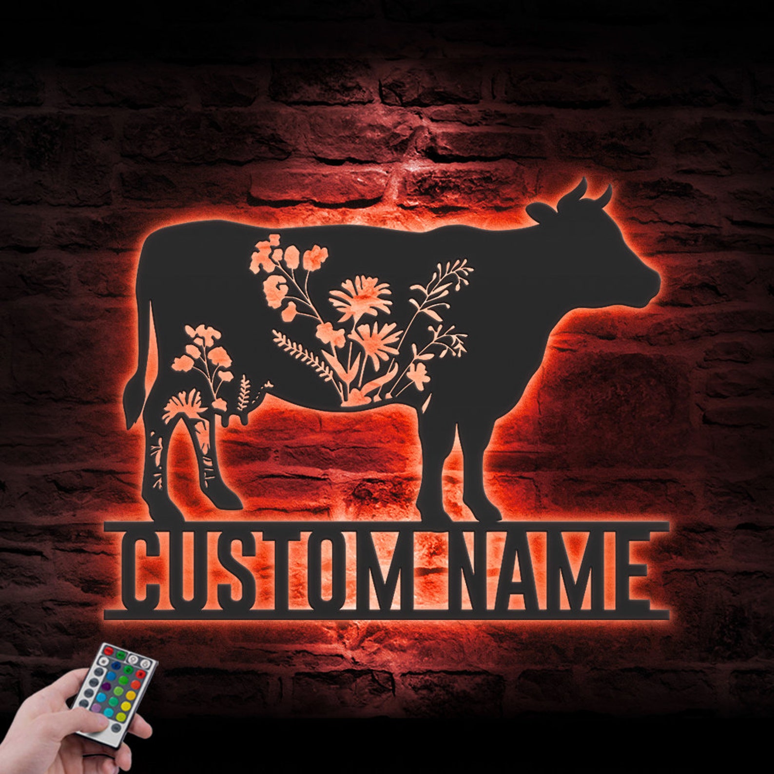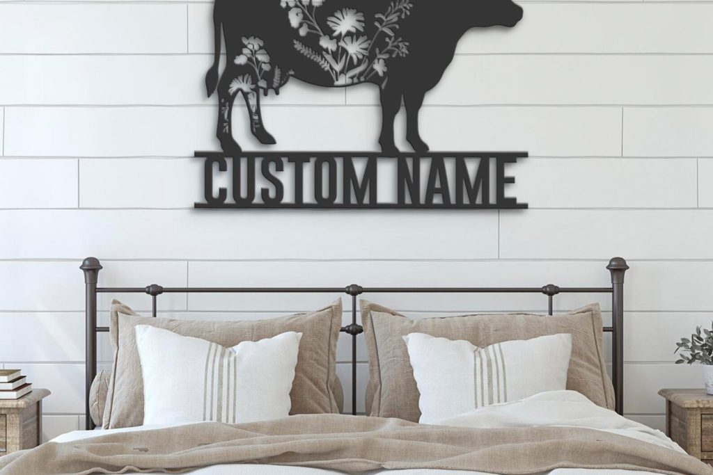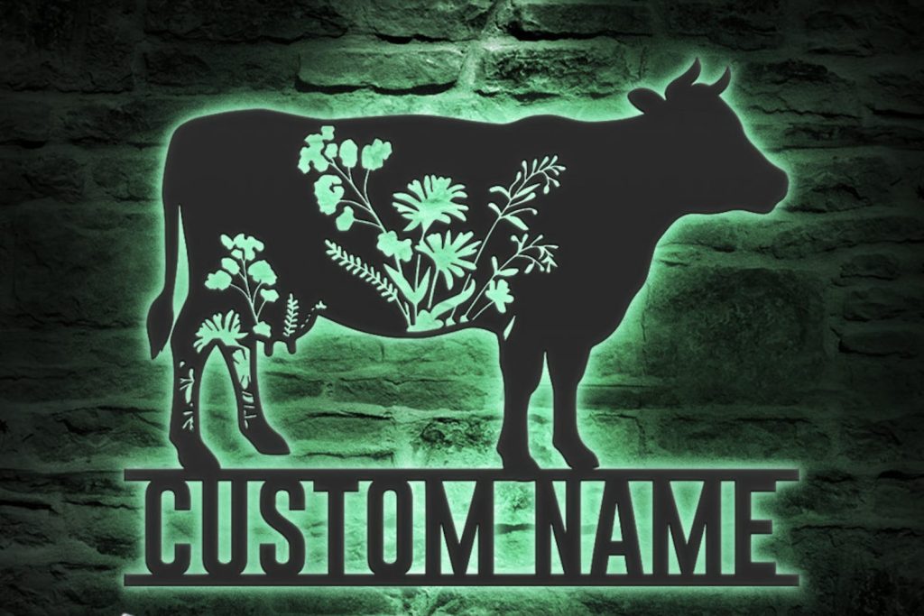 Be the first to review “Custom Wildflower Cow Metal Sign with LED – Farmhouse Decor”