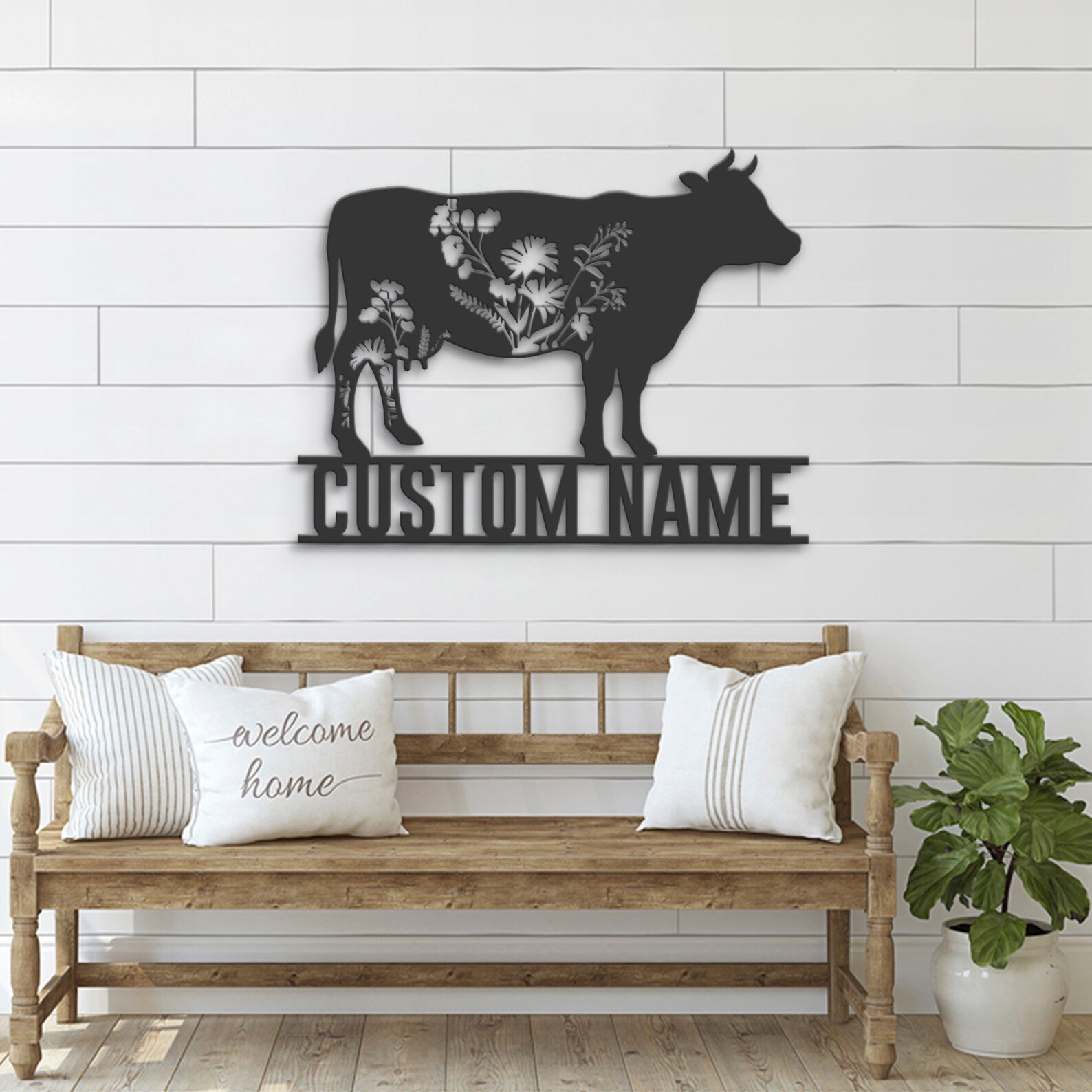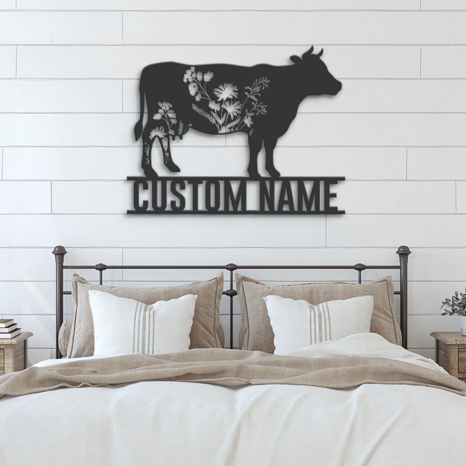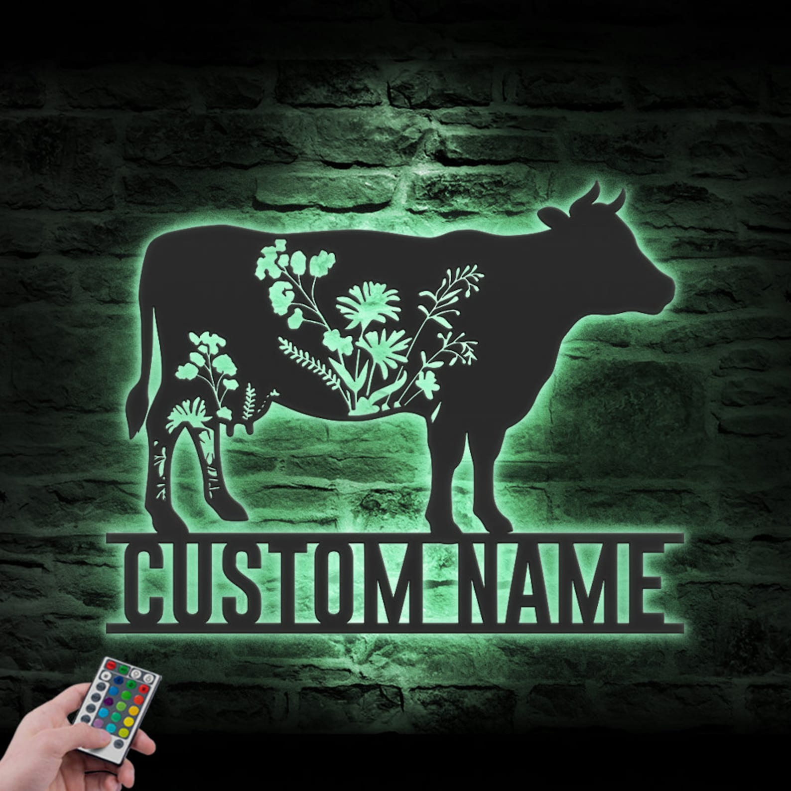 Be the first to review “Custom Wildflower Cow Metal Sign with LED – Farmhouse Decor”
