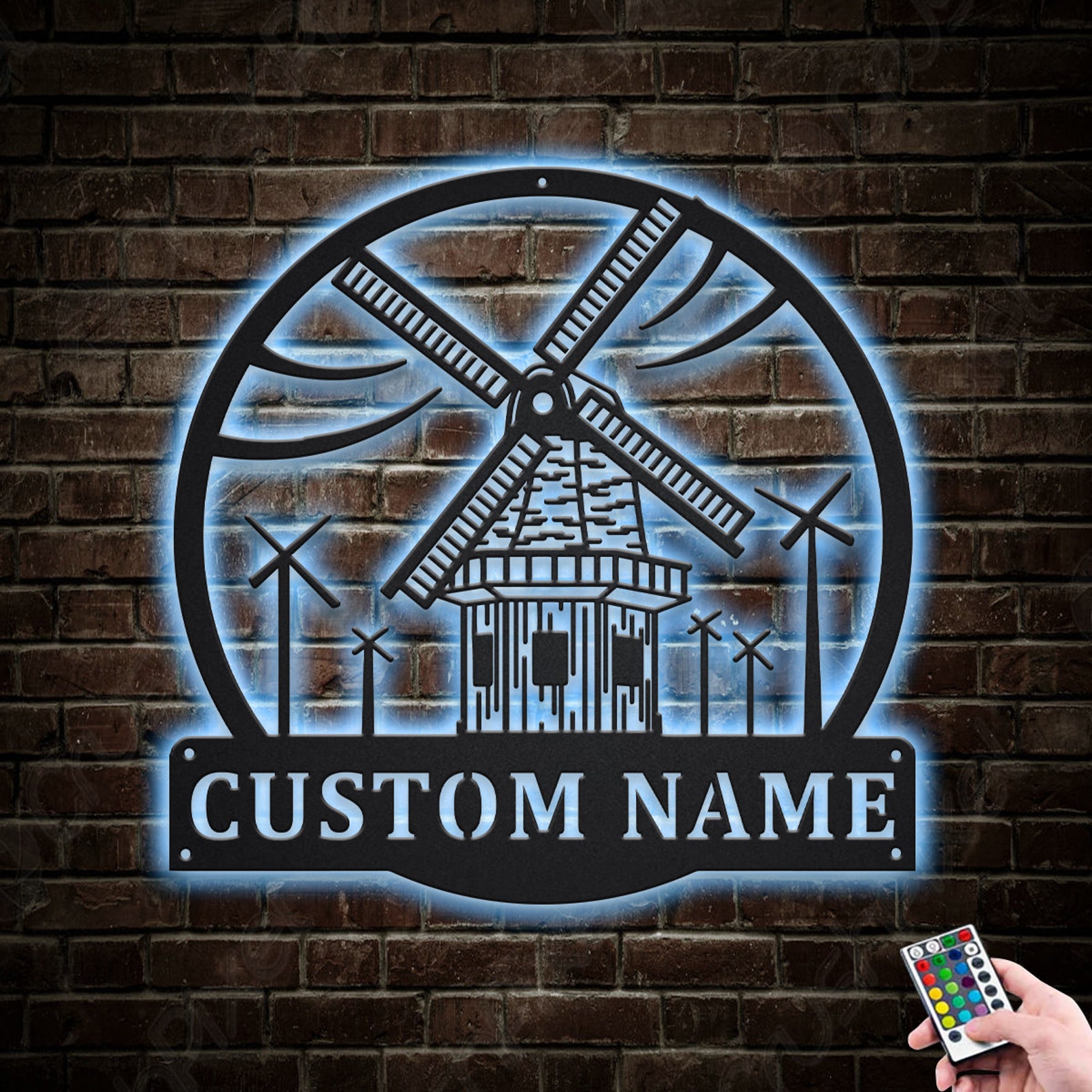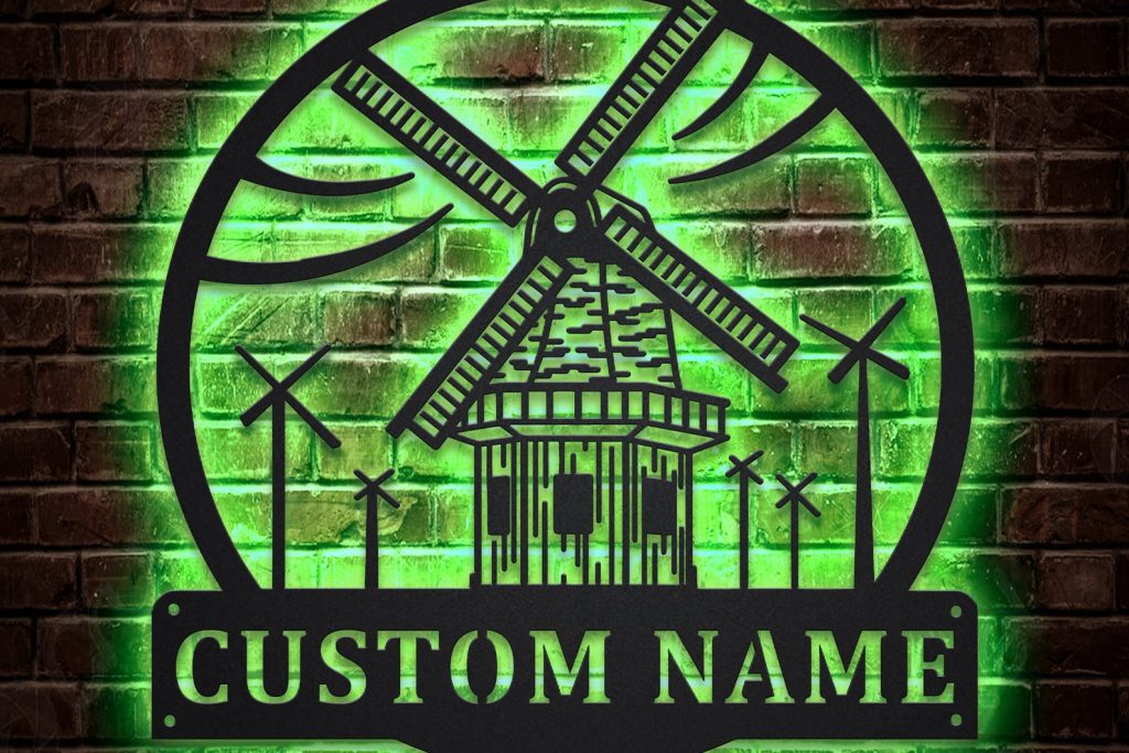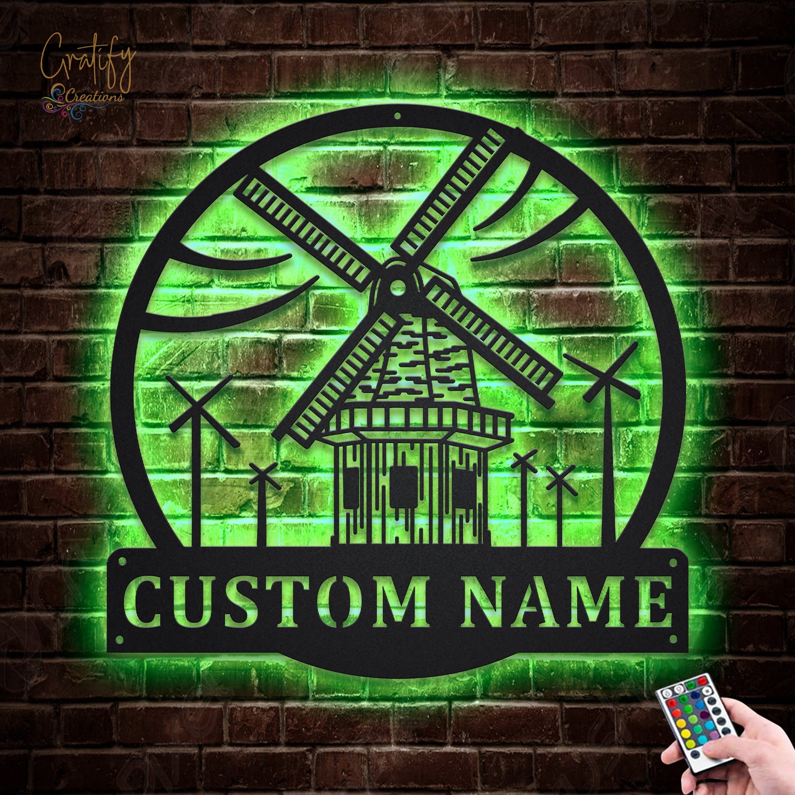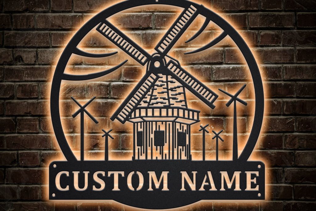 Custom Windmill Metal Sign with LED for Dutch Style Decor