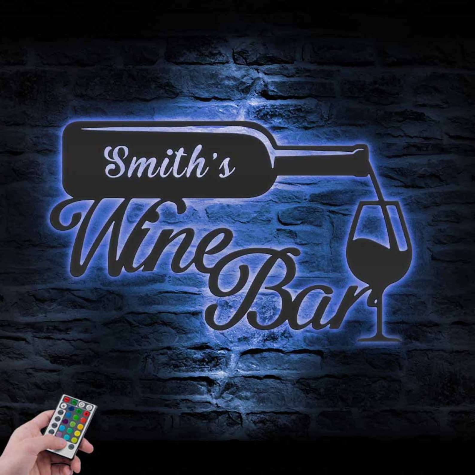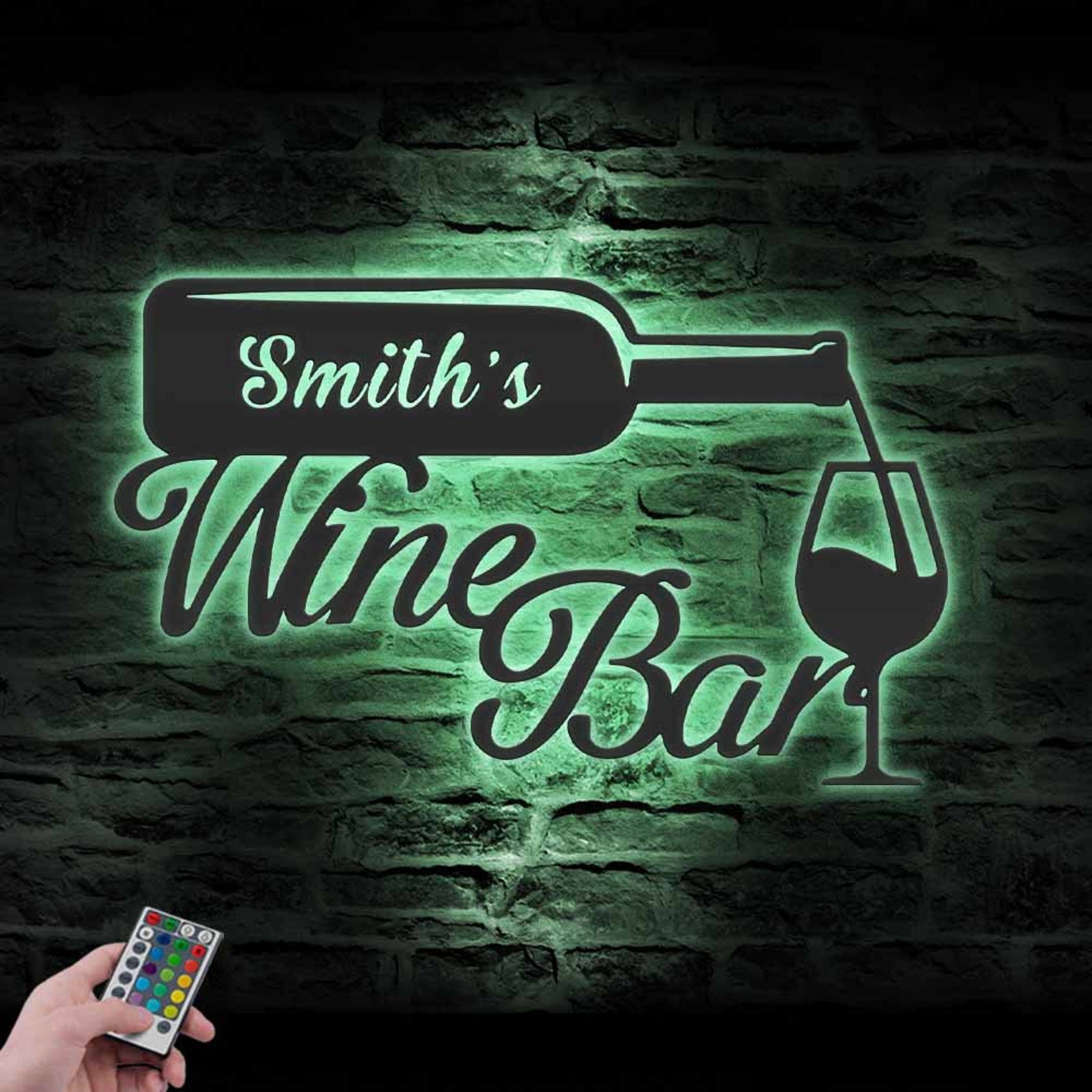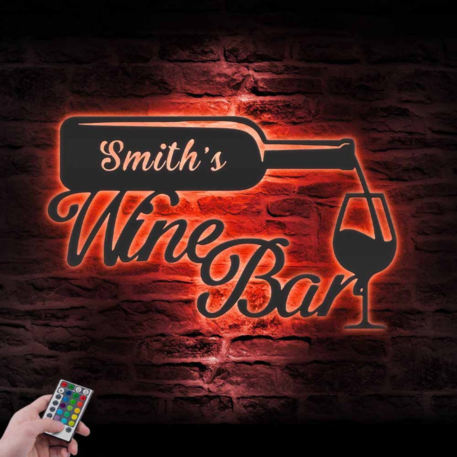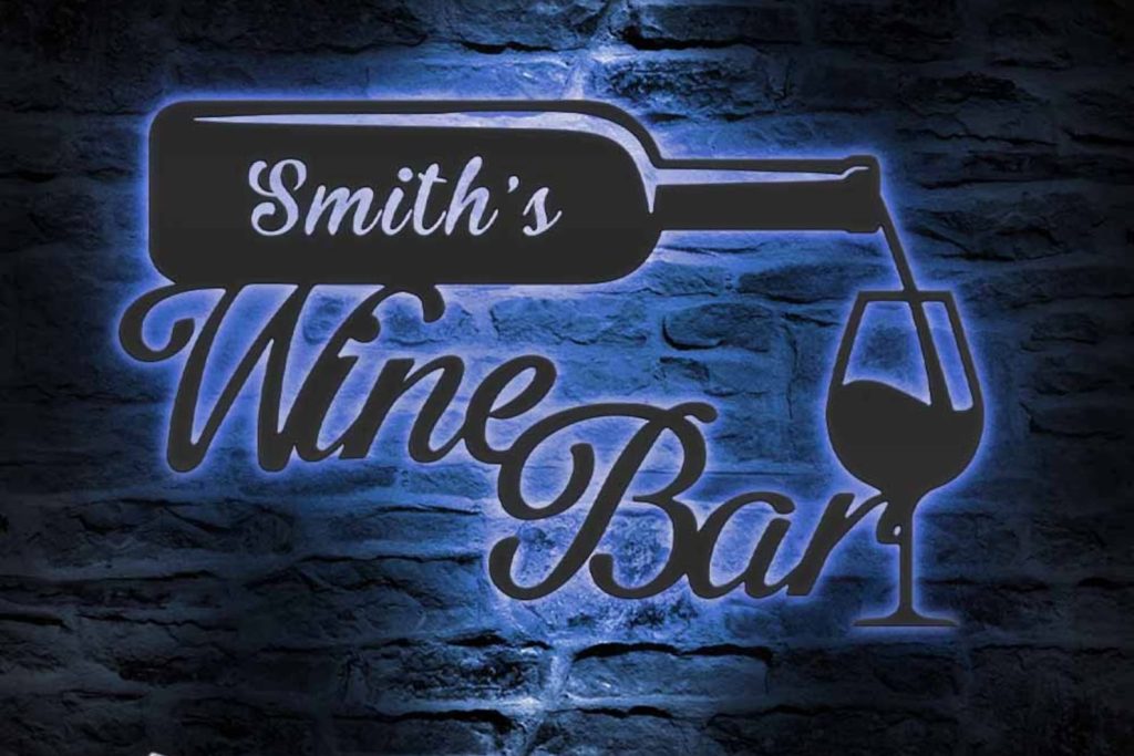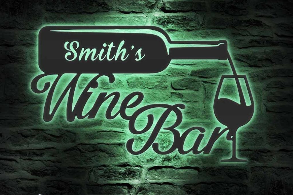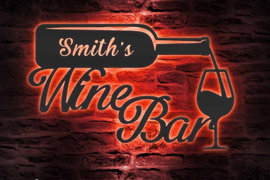 Custom Wine Bar Metal Art with LED & Drinking Name