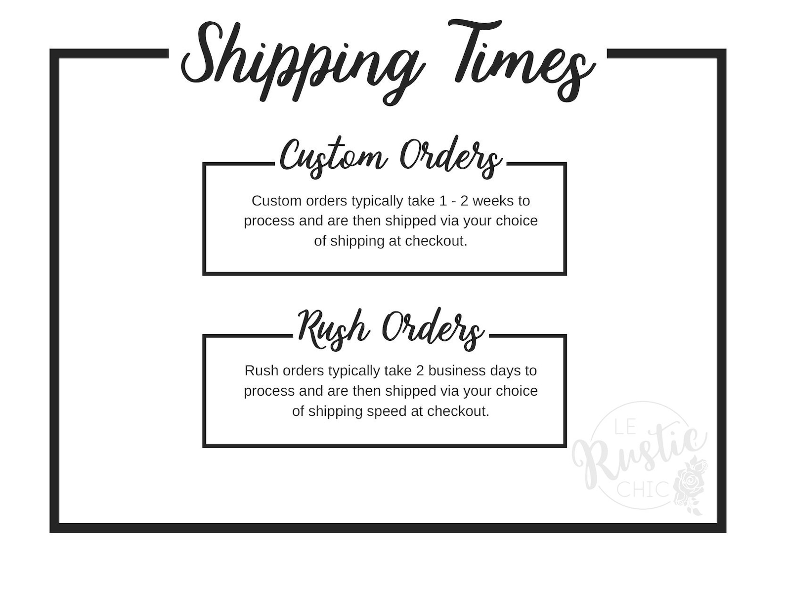 Please see the shipping tab for shipping estimates and policies. Rush orders available here: /listing/194017830