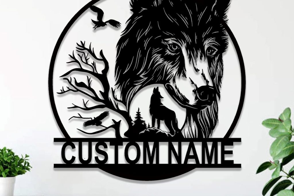 ***Custom Wolf Metal Sign, Wolf Metal Wall Decor, Personalized Wolf Metal Name Sign, Custom Name Metal Sign, Housewarming Gift, 8-24 Inch***