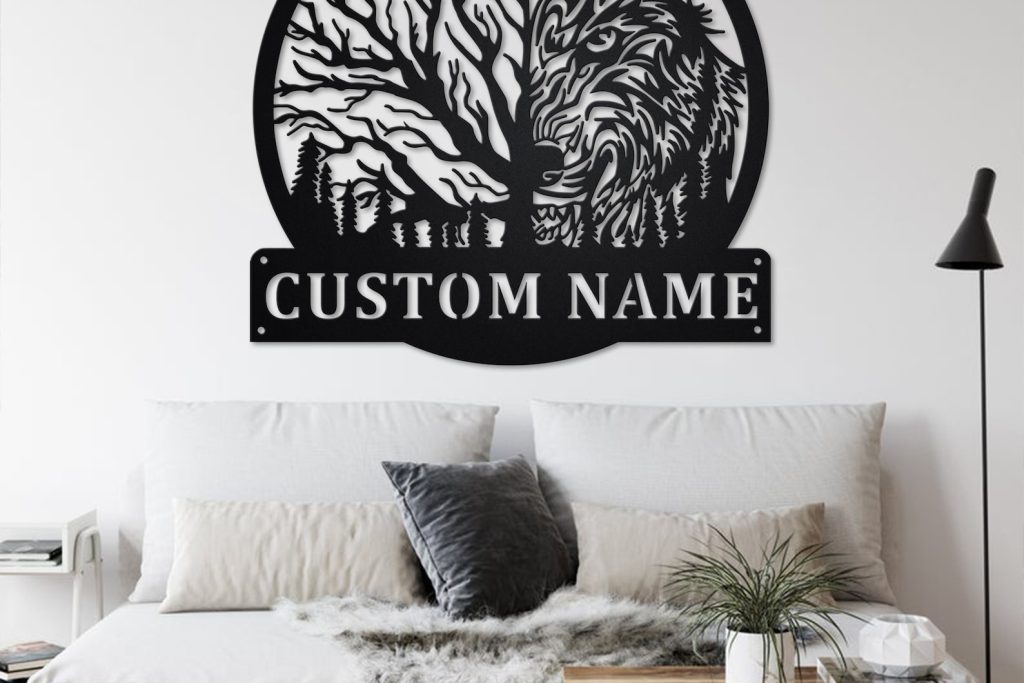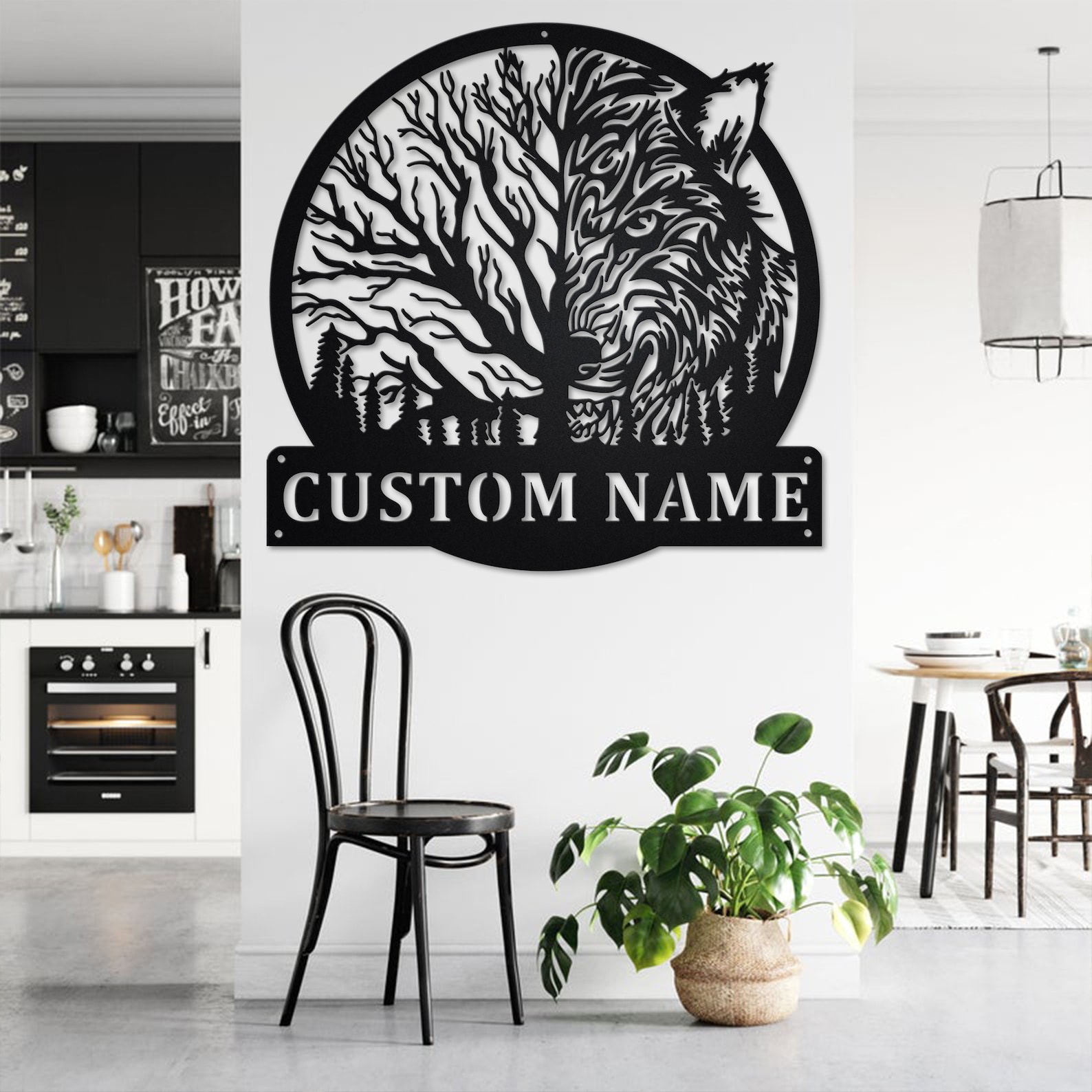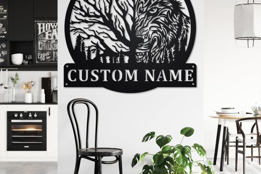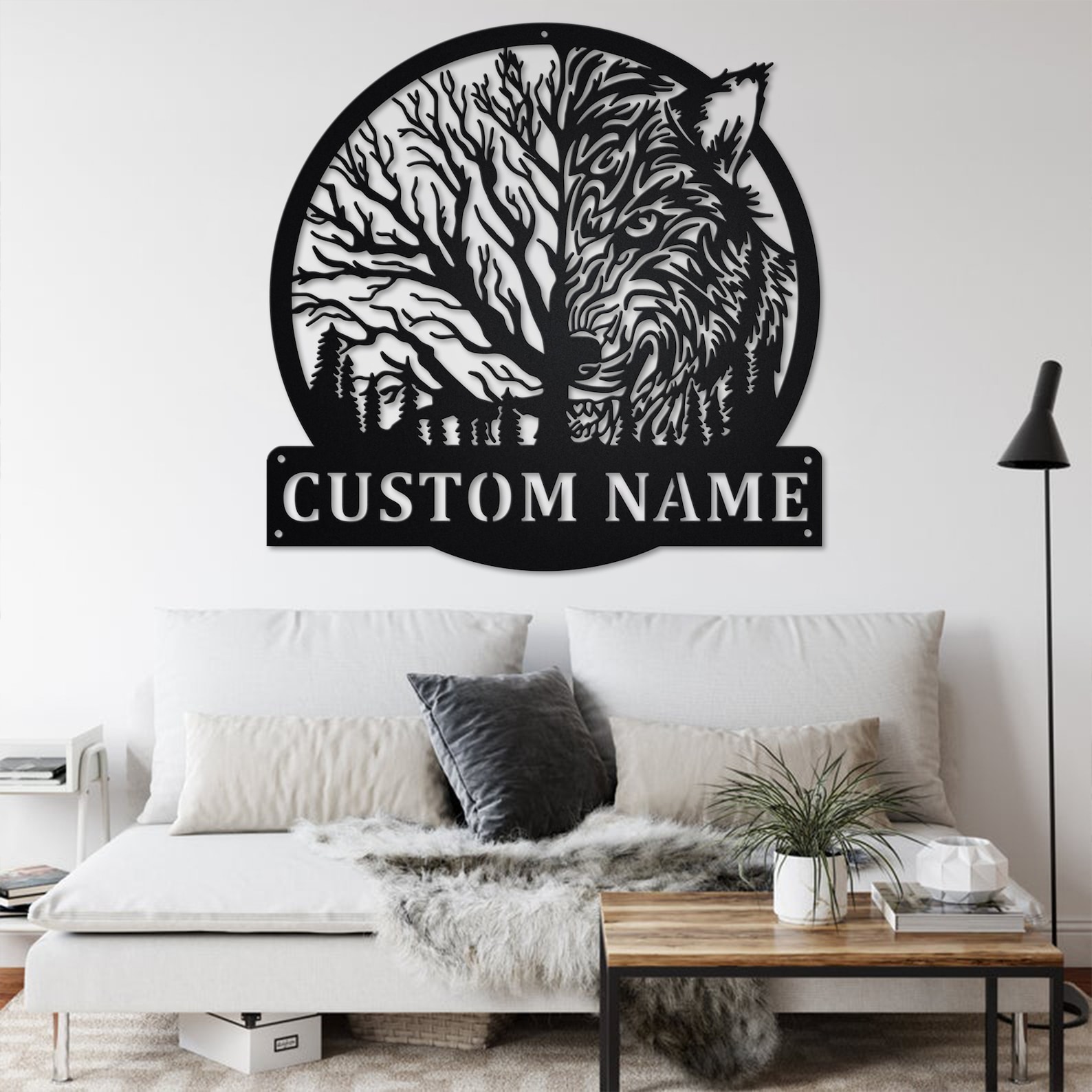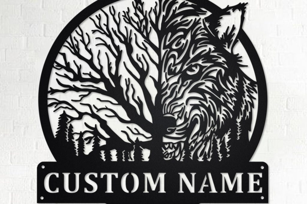 Custom Wolf Moon Metal Wall Art – Personalized Wolf Decor