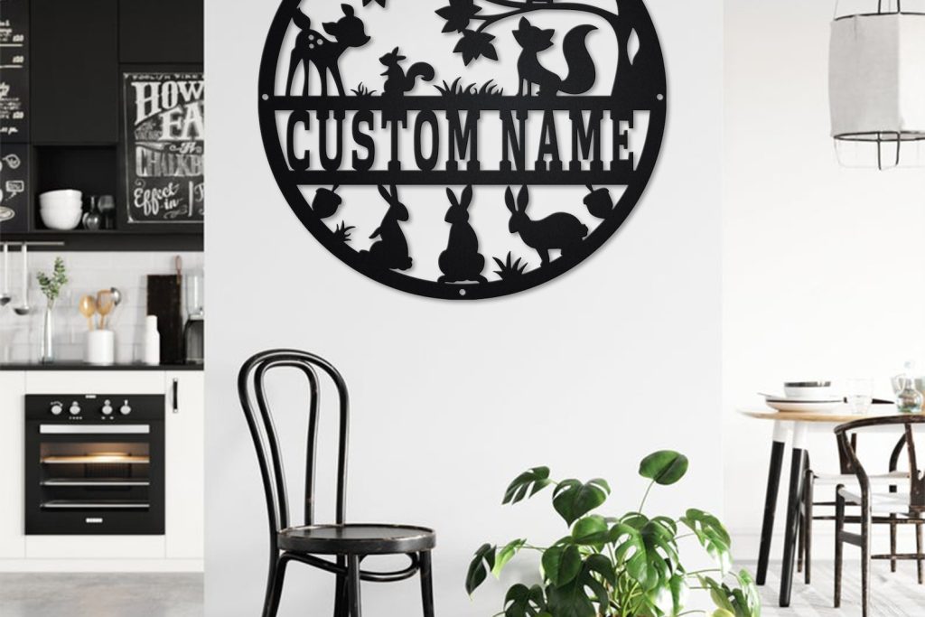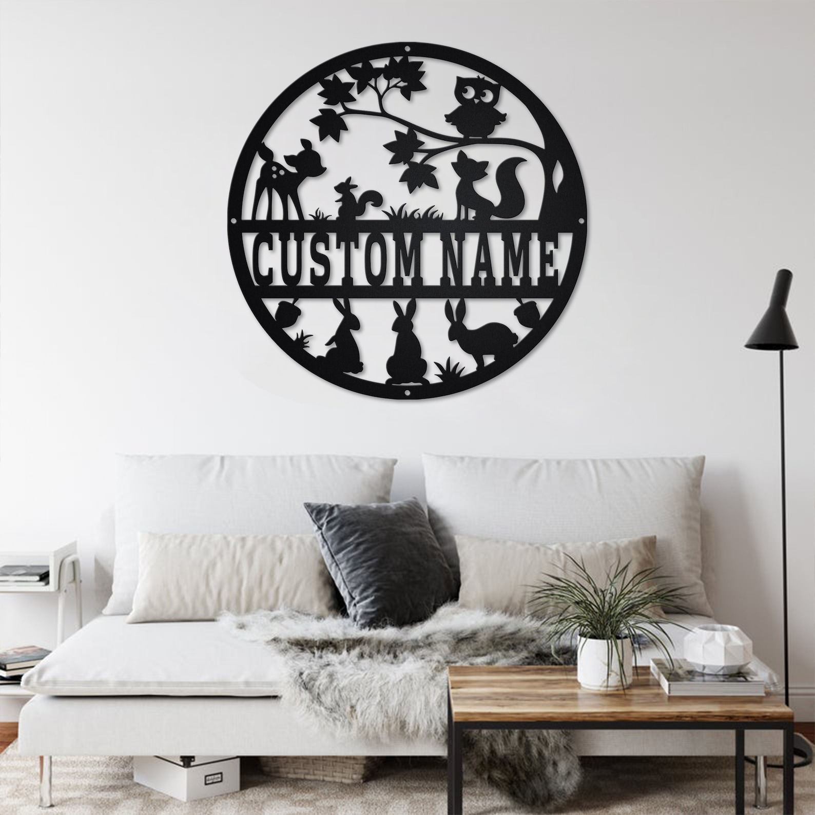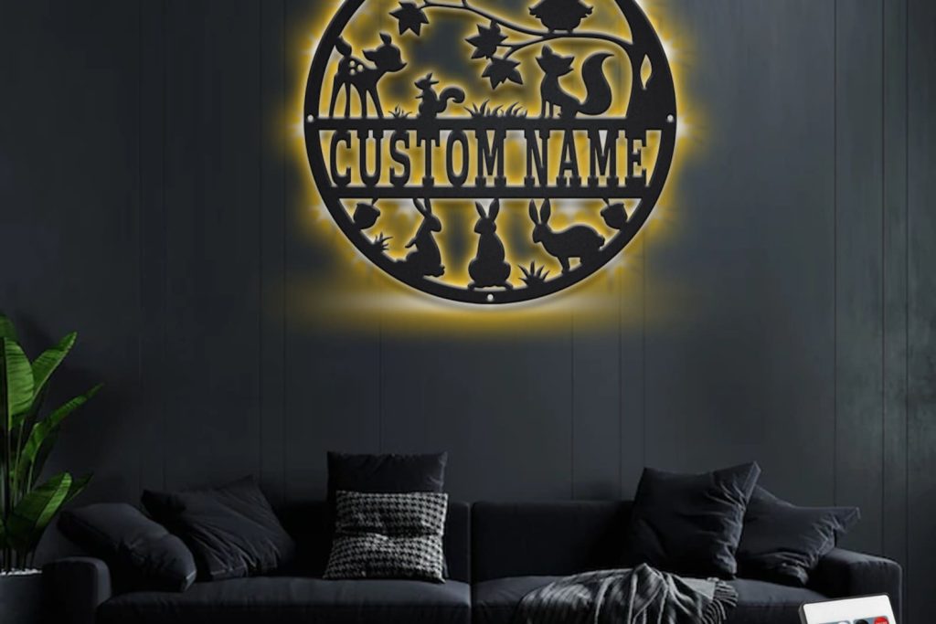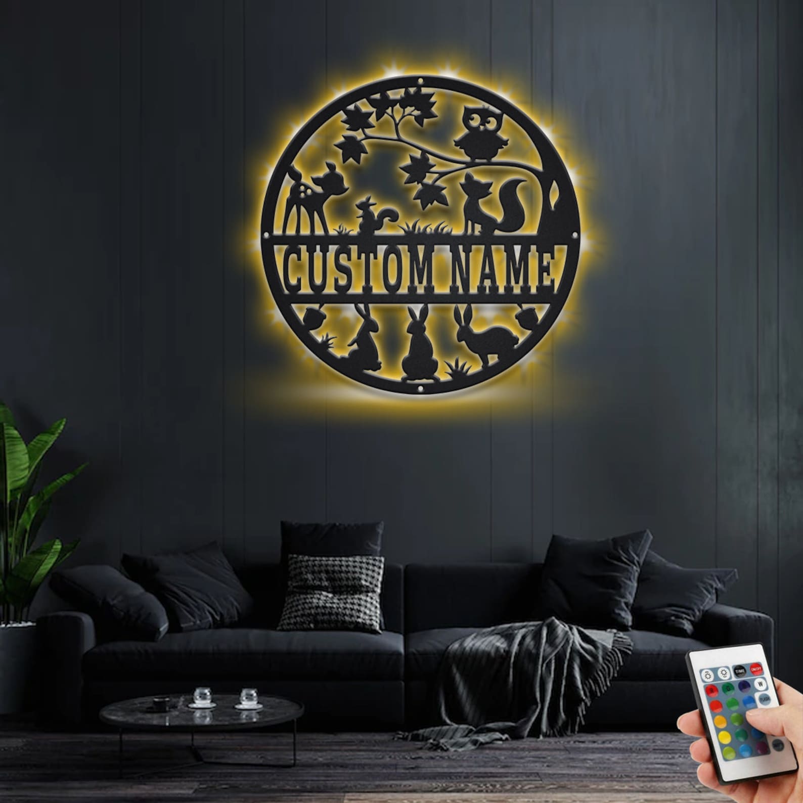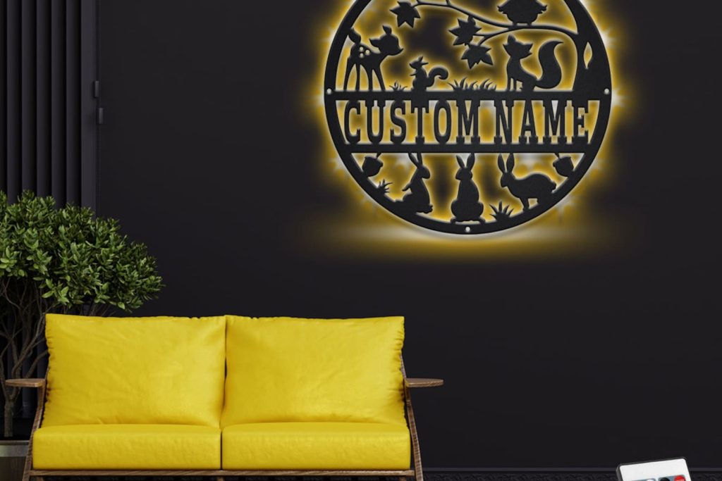 Custom Woodland LED Metal Art – Personalized Name Sign Decor