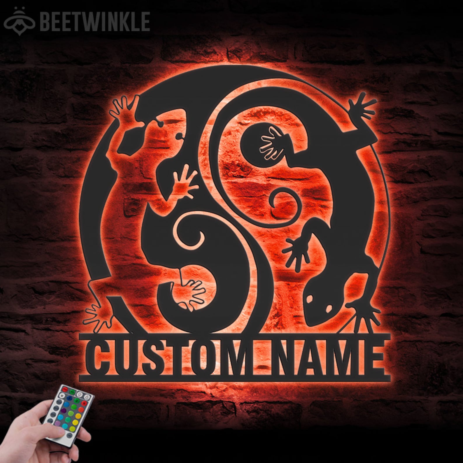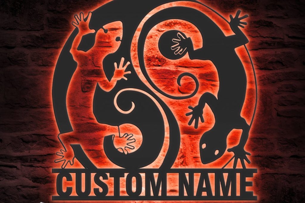 Be the first to review “Custom Yin Yang Gecko LED Metal Art – Personalized Lizard Name Sign”