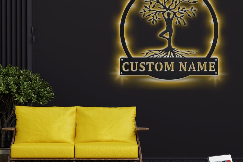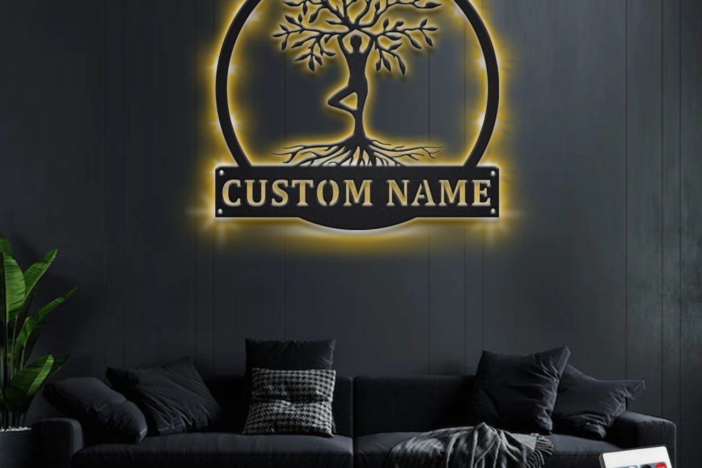 Be the first to review “Custom Yoga Tree of Life Metal Art with LED Light”