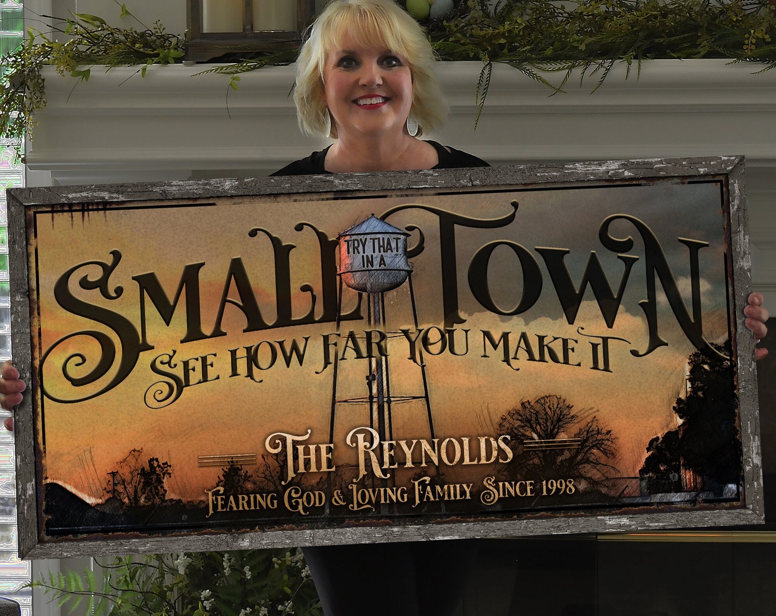 28" metal sign with baked on powder coated finish. Personalized with your name