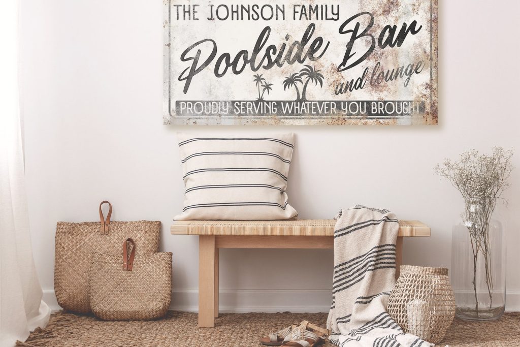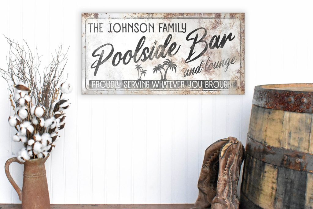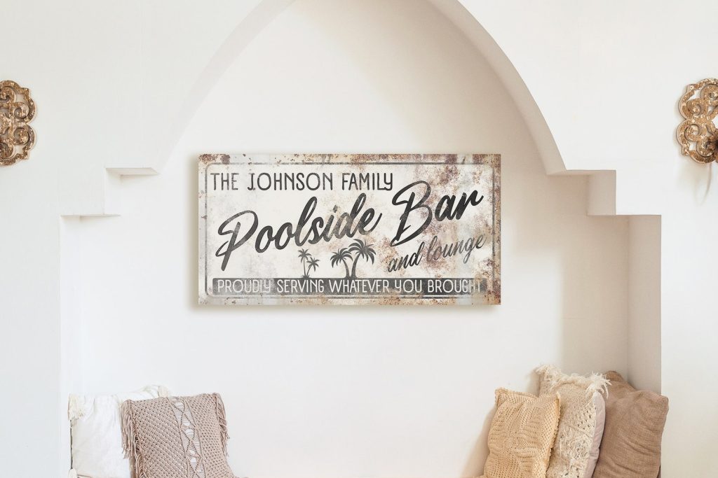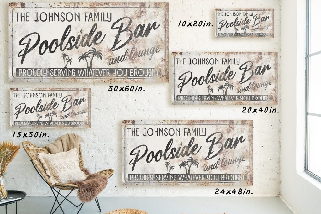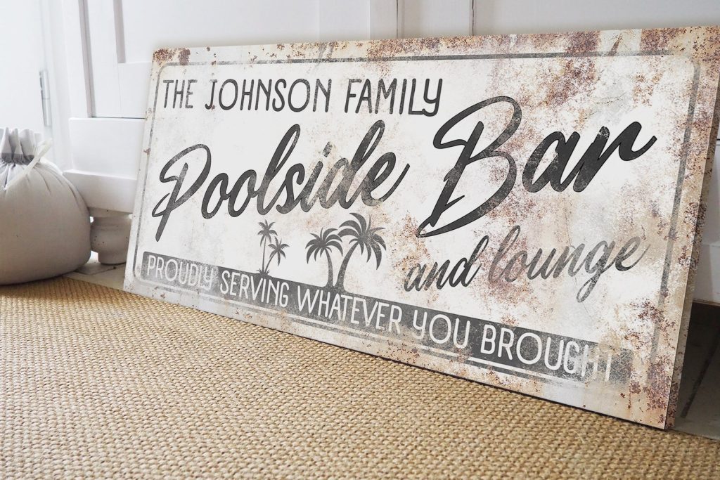 Be the first to review “Customized Pool Bar and Lounge Sign – Family Name Wall Art”