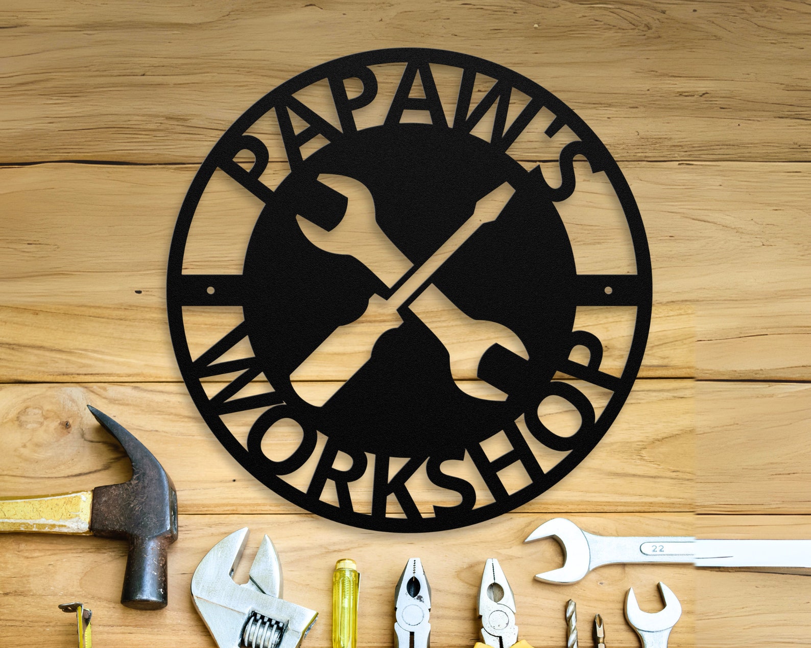 Surprise your loved one with a thoughtful and personalized gift that will be cherished for years to come. Ideal for birthdays, holidays, or just because. Show your appreciation for Papa9;s Workshop with this one-of-a-kind metal sign!