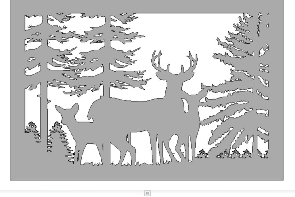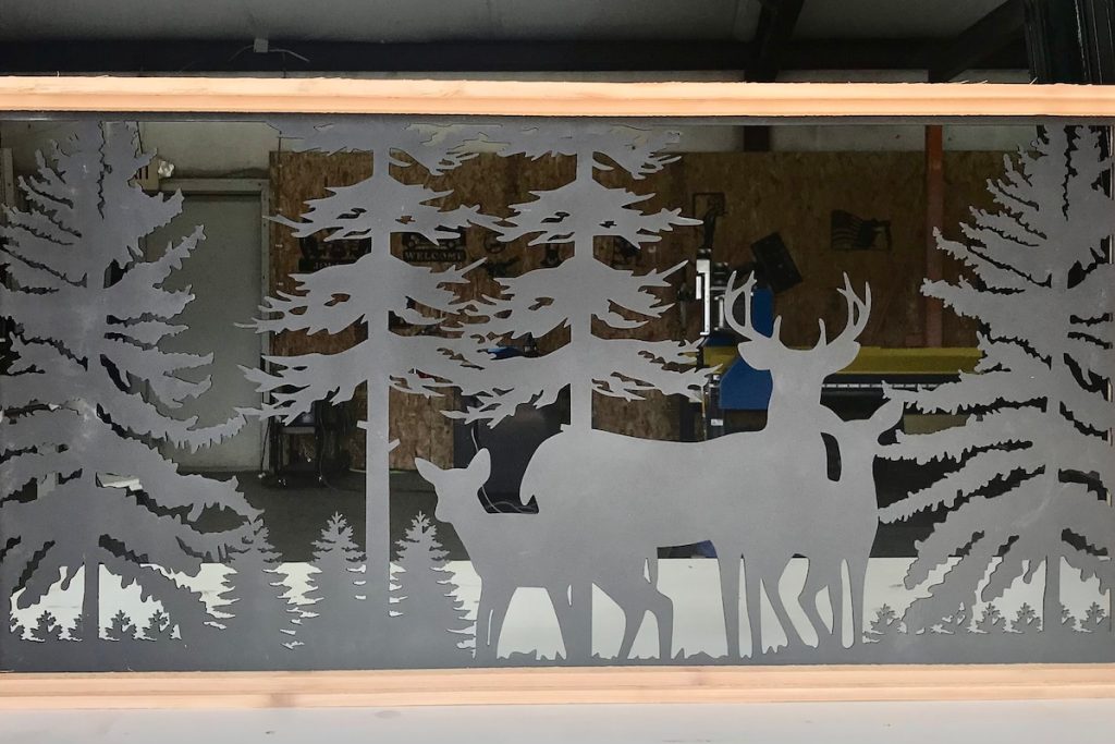 Decorative Rustic Metal Panel. Wildlife scenery with deer and trees.