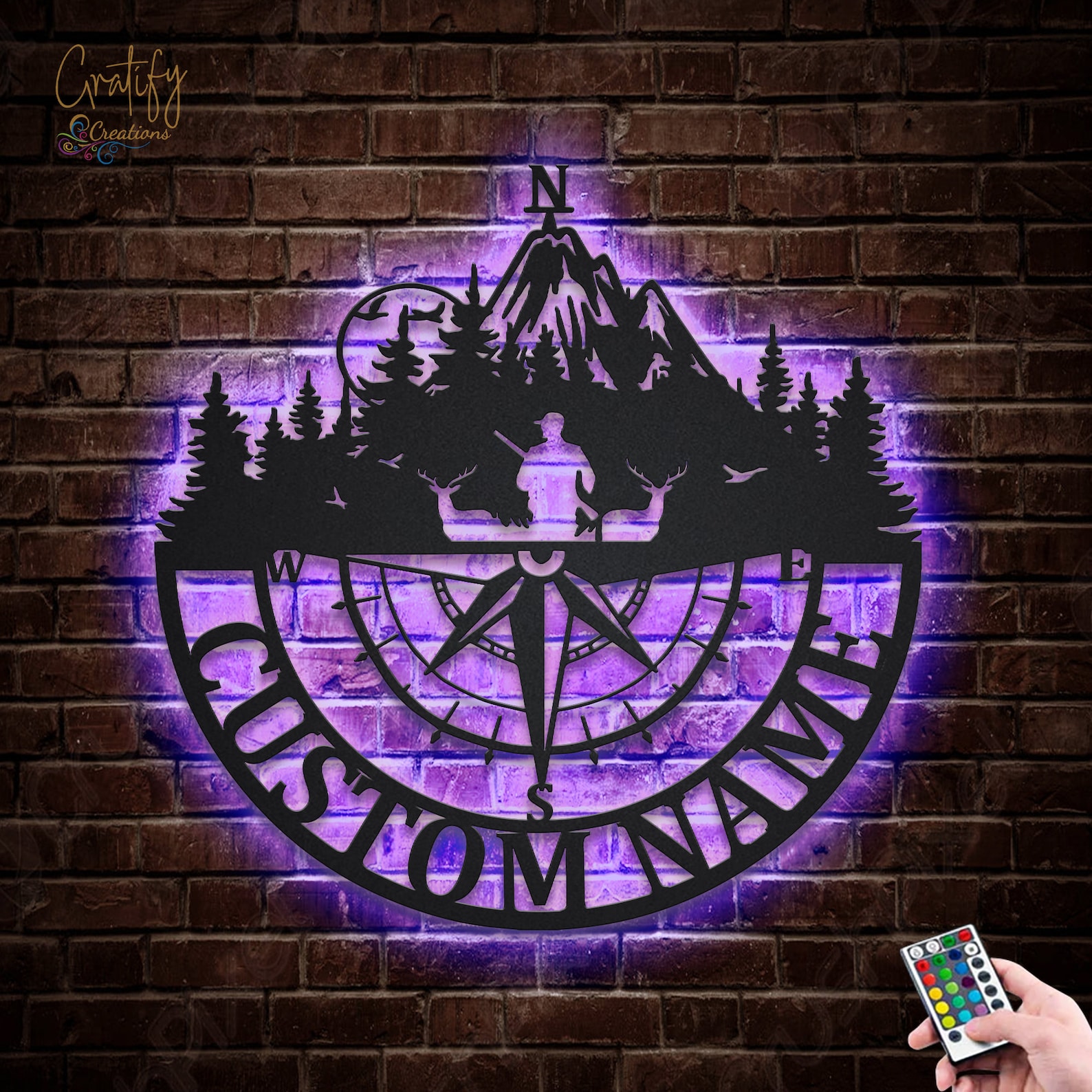 Be the first to review “Deer Hunter Compass Metal Sign with LED – Cabin Decor”