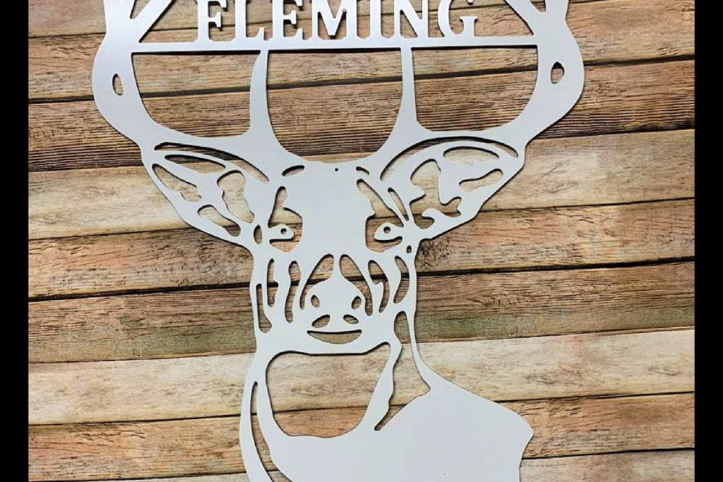 Personalize the "Man Cave" with this customized 24" x 18" deer antlers/deer head family name wall decor! Chose your color, hanging option, and then enter your last name (you can also enter your "Established Date" if you want that incl AT NO EXTRA COST). It is made from Metal ACM, is weatherproof, and will last! Lightweight and easy to hang.