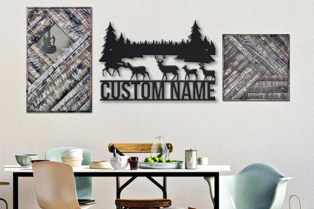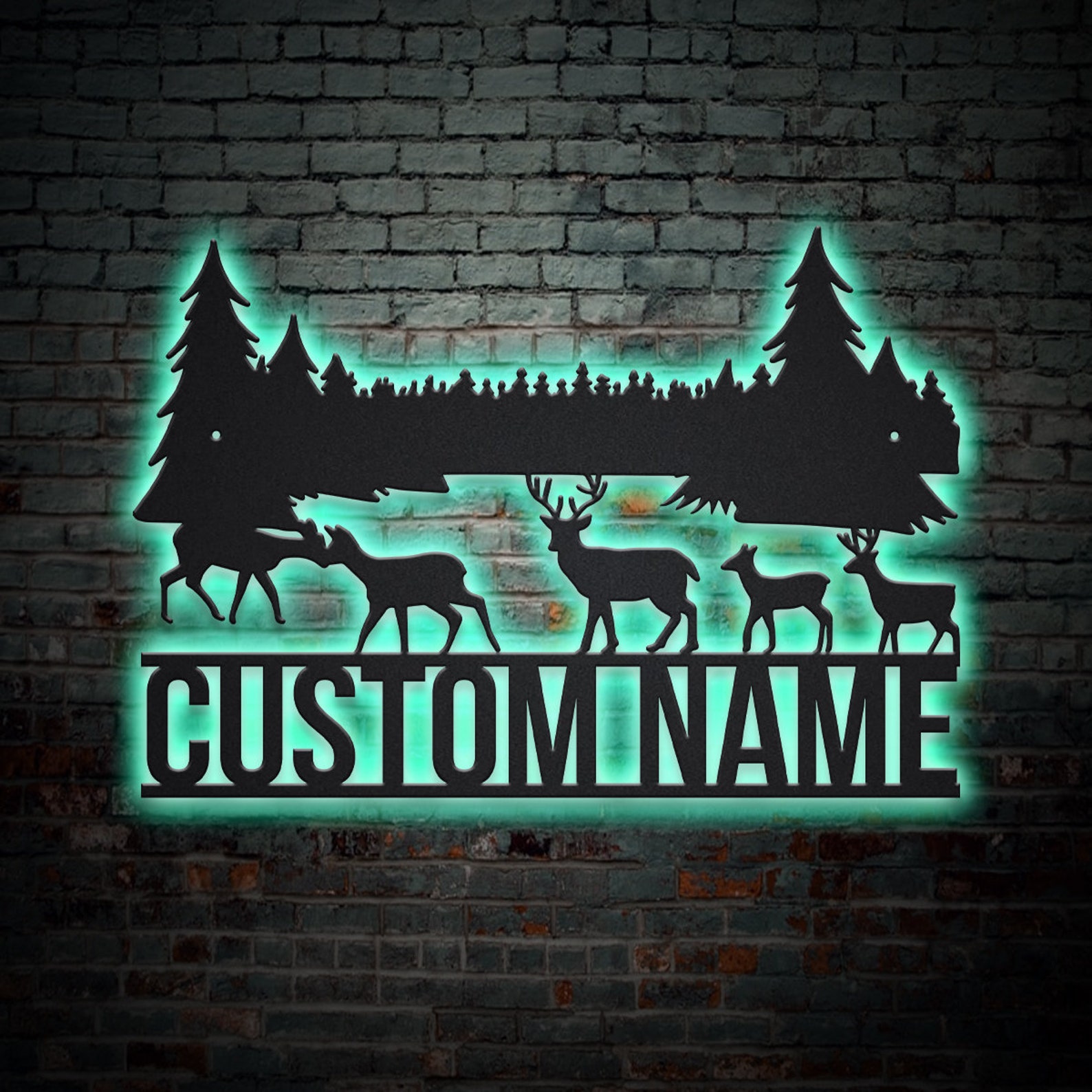 Deer Mountain Metal Sign – LED Lights, Hunting Decor