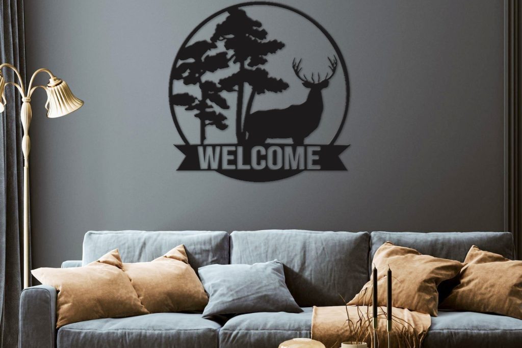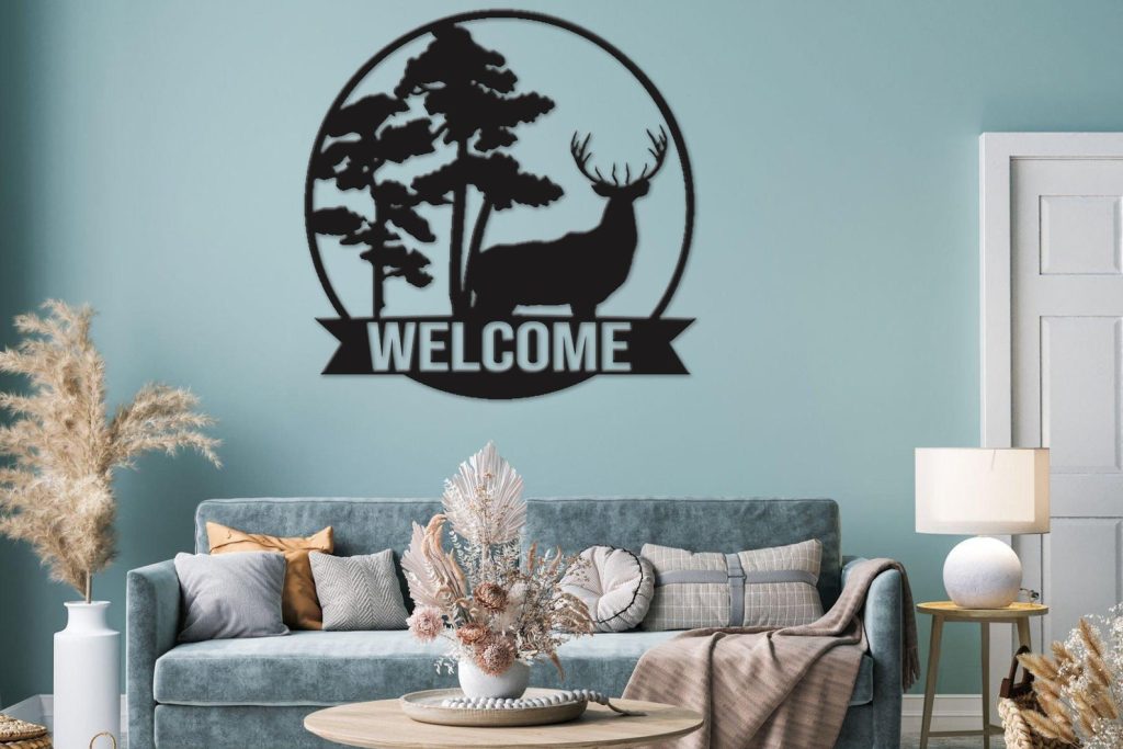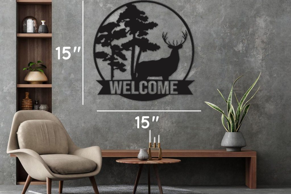 Deer Welcome Metal Sign – Custom Family Name Decor