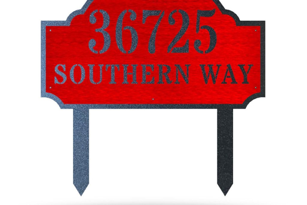 This Beautiful Customized Deluxe Address Sign is constructed of 16 gauge steel on a Fiber Laser and then Powder Coated to give this item a one of a kind, unique finish.