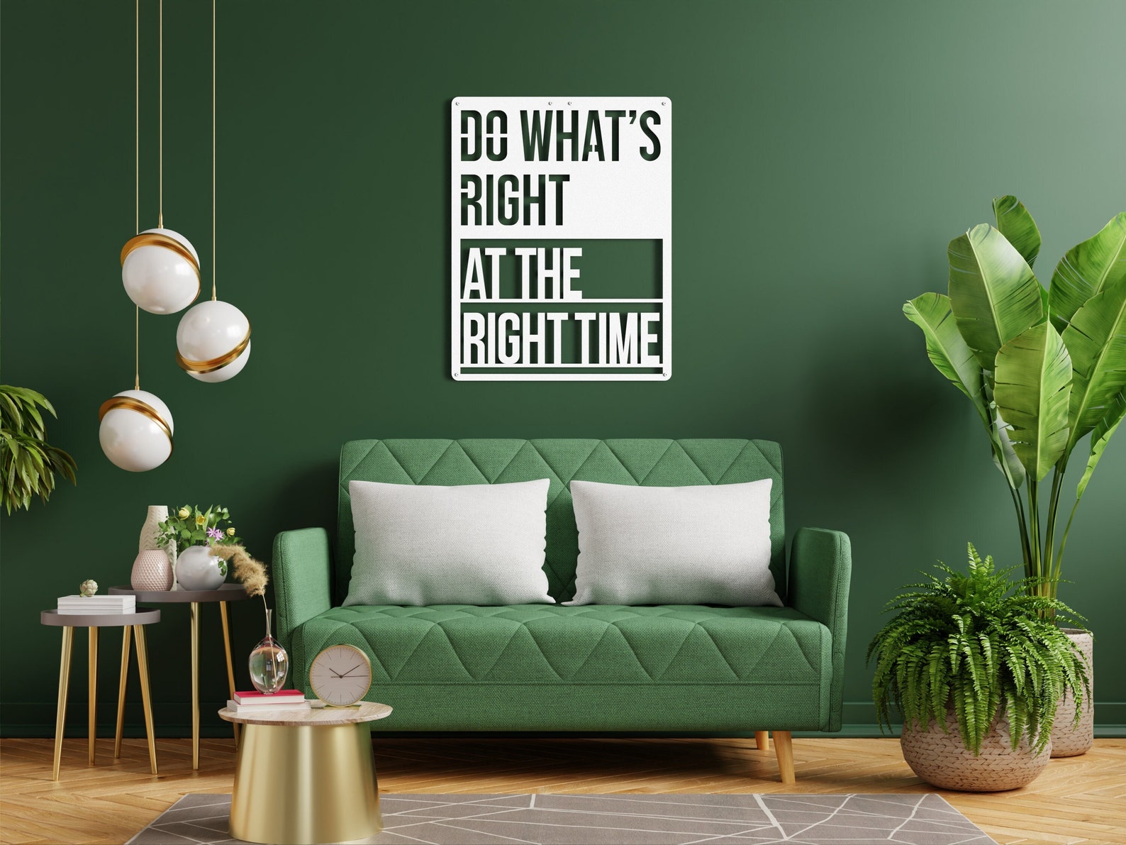 Do Whats Right At The Right Time Metal Wall Decor has different size options. It will add a playful and luxury look to your home and can be a perfect gift for your friends or family members. Modern Wall Art can be used as Bedroom Wall Decor, Living Room Decor, etc. according to your preferences. It is produced using mild steel (ST37). Designs are produced by laser cutting. It is painted with electrostatic paint. This method ensures that the product is of higher quality and durability.