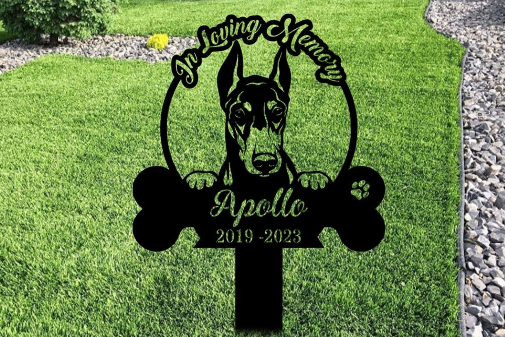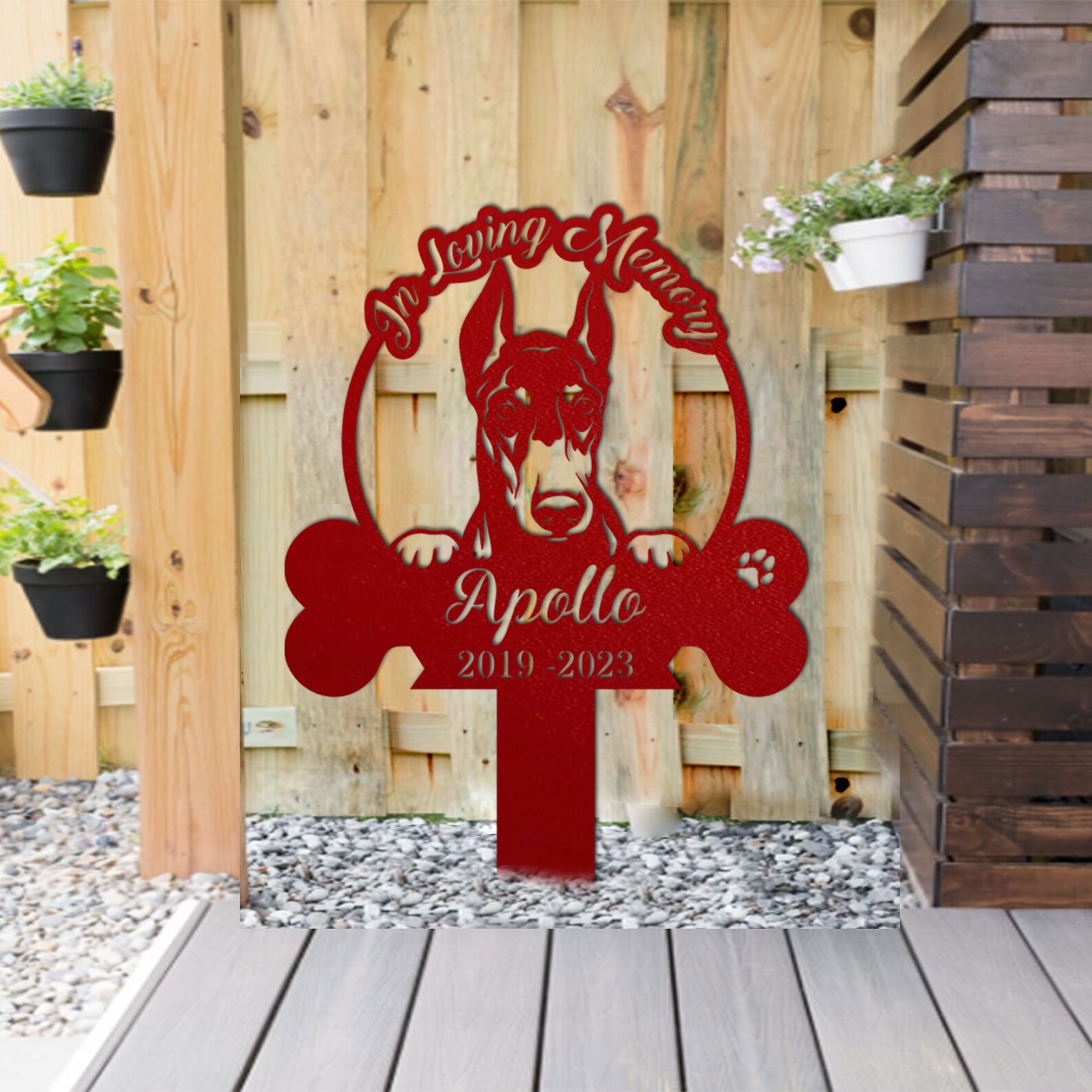 Personalized Dog Memorial Stake,In Loving Memory Doberman Dog,Metal Stake,Pet Grave Marker,Remembrance Stake,Doberman Sign,Garden Decor