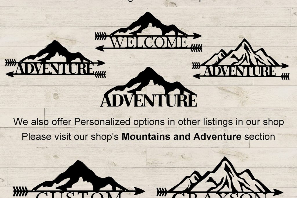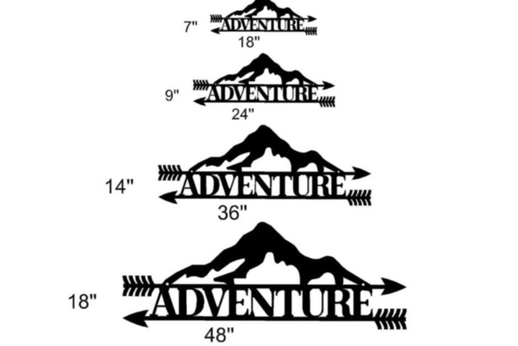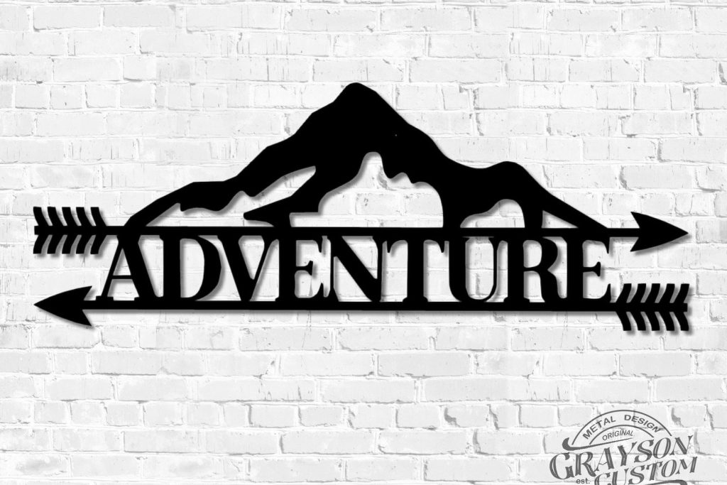 Double Arrow Mountain Range Adventure Sign. This Rustic metal wall decoration will make a great Wedding, Anniversary, or Christmas gift. Adventure awaits a great wall hanging as part of your farmhouse decor or some metal words of inspiration to hang just about anywhere you9;d like : )
